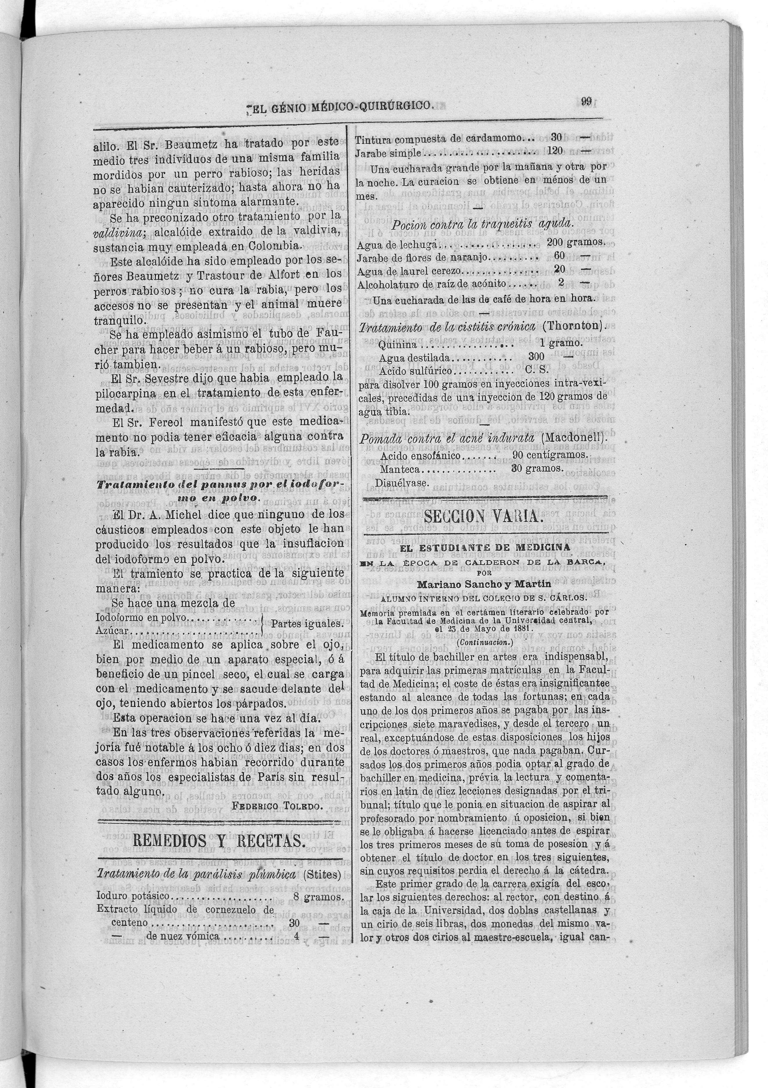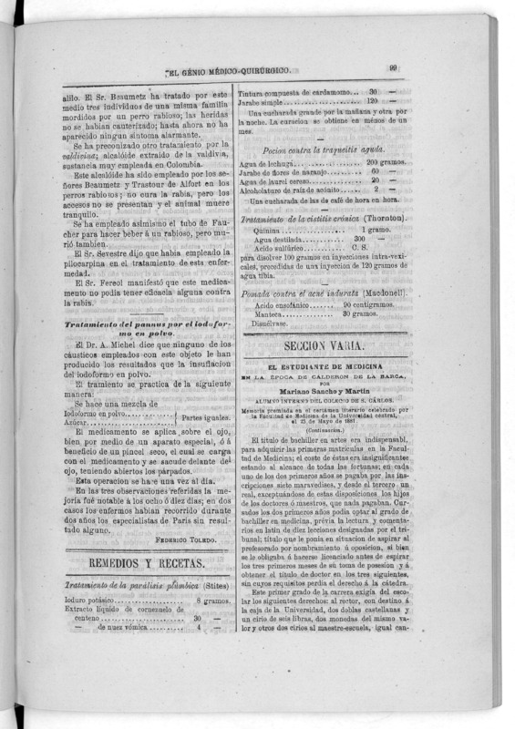 Parte de El Genio médico-quirúrgico : periódico de ciencias médicas ‐ [1882, Vol. 28, n. 1366-1393, 1340-1359.]