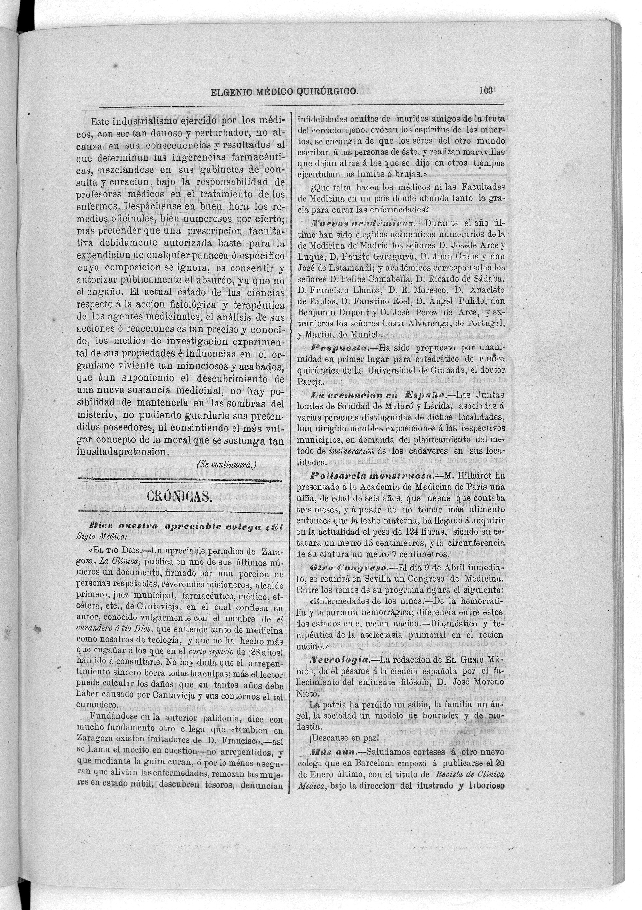 Parte de El Genio médico-quirúrgico : periódico de ciencias médicas ‐ [1882, Vol. 28, n. 1366-1393, 1340-1359.]