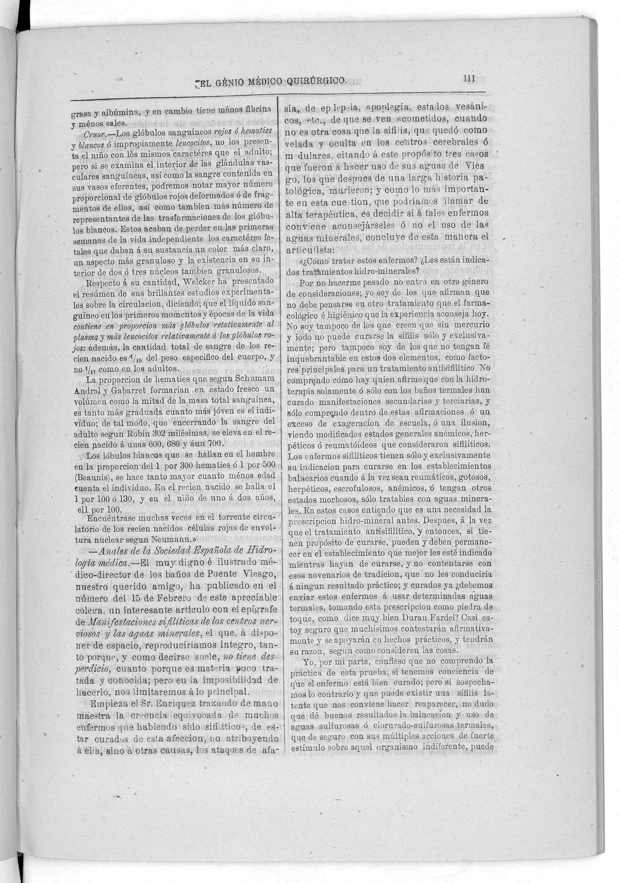 Parte de El Genio médico-quirúrgico : periódico de ciencias médicas ‐ [1882, Vol. 28, n. 1366-1393, 1340-1359.]