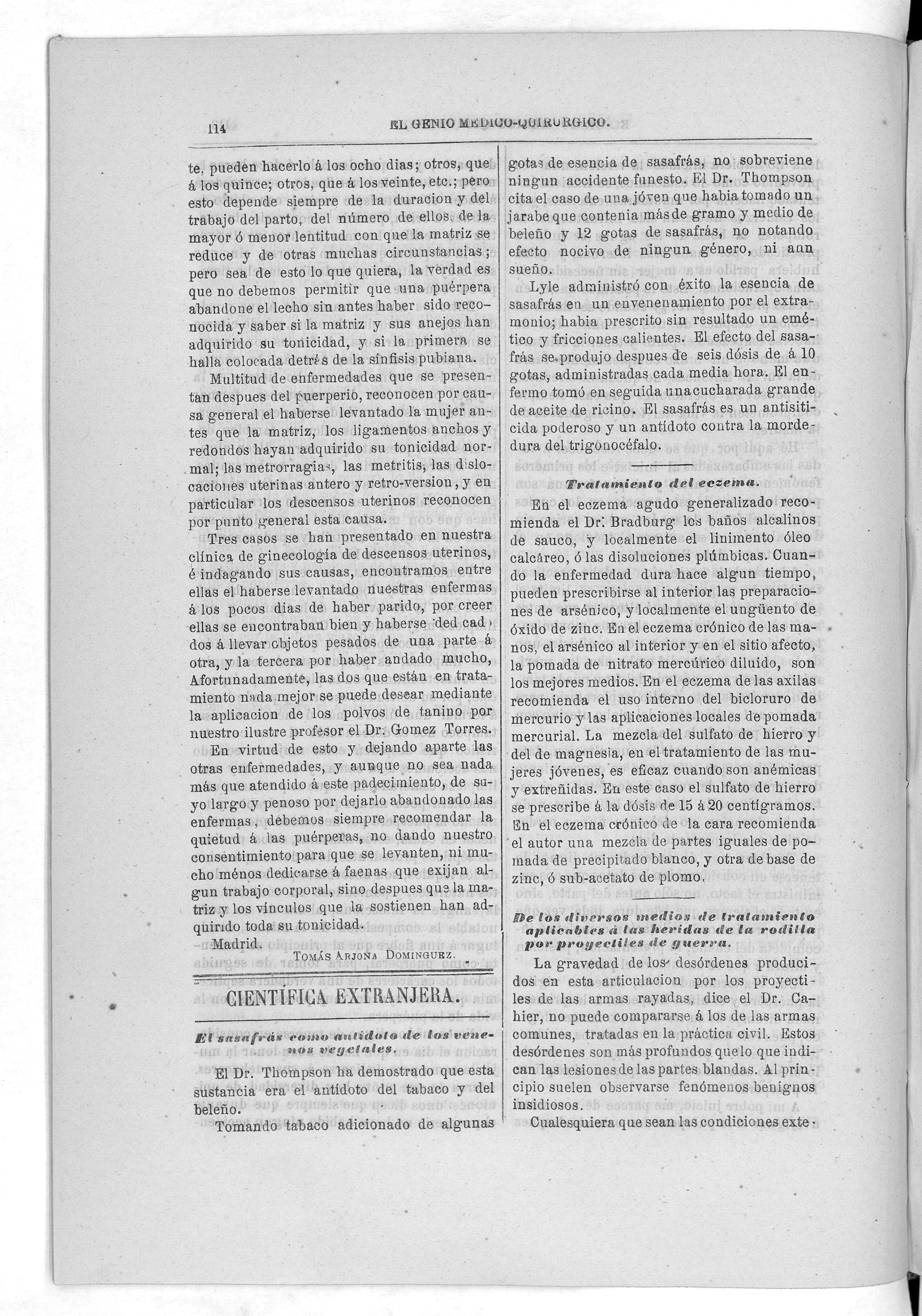 Parte de El Genio médico-quirúrgico : periódico de ciencias médicas ‐ [1882, Vol. 28, n. 1366-1393, 1340-1359.]