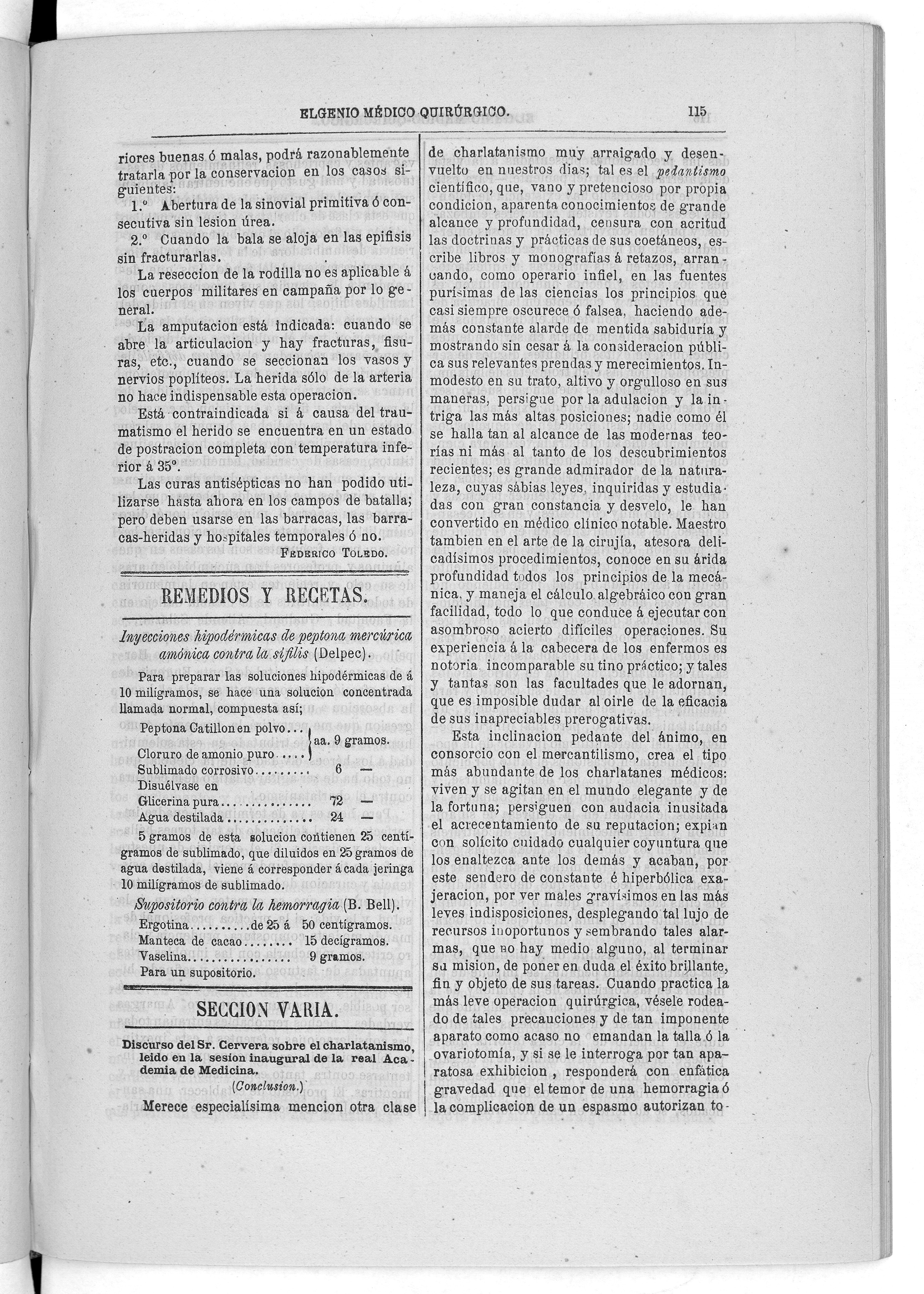 Parte de El Genio médico-quirúrgico : periódico de ciencias médicas ‐ [1882, Vol. 28, n. 1366-1393, 1340-1359.]