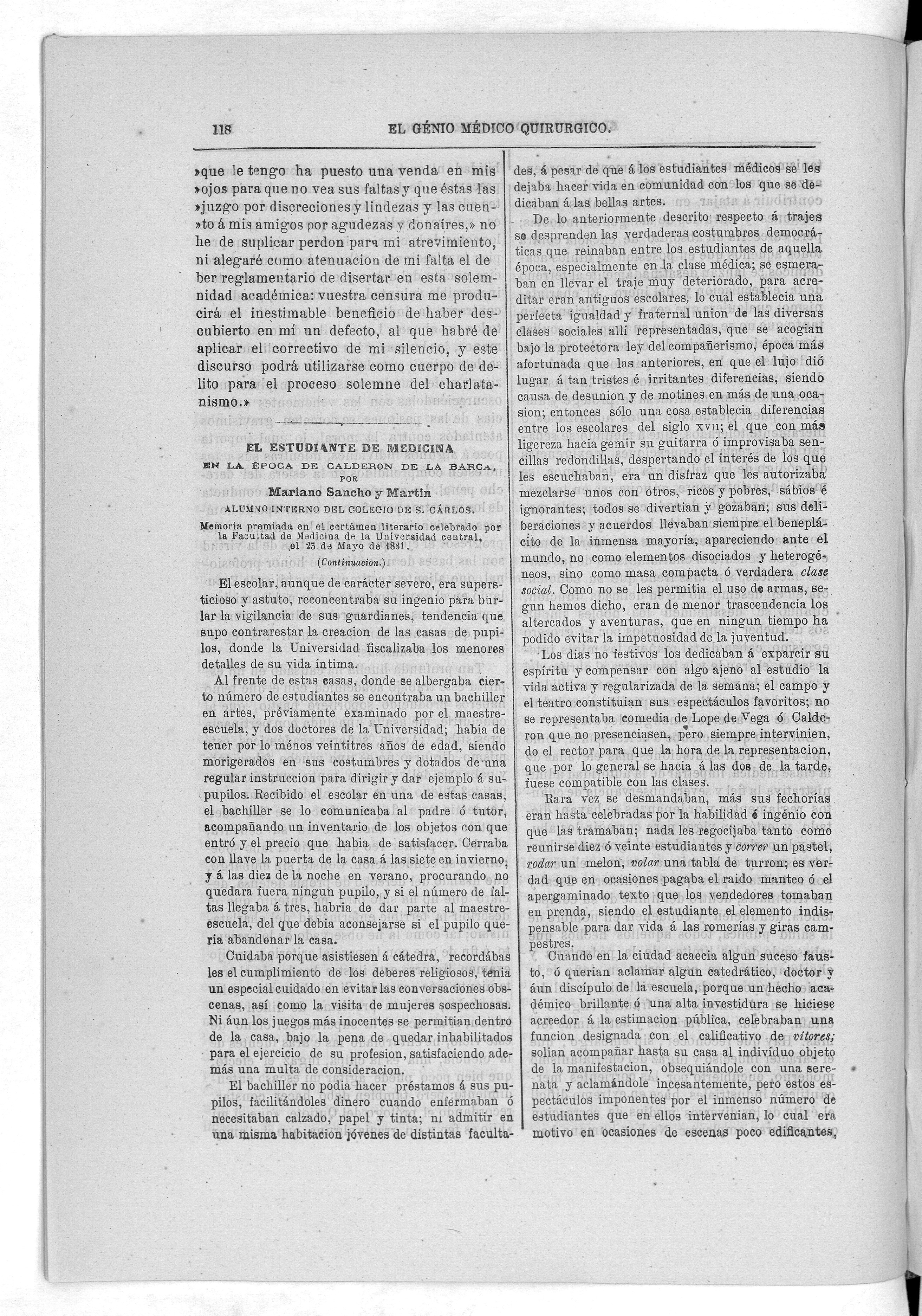 Parte de El Genio médico-quirúrgico : periódico de ciencias médicas ‐ [1882, Vol. 28, n. 1366-1393, 1340-1359.]