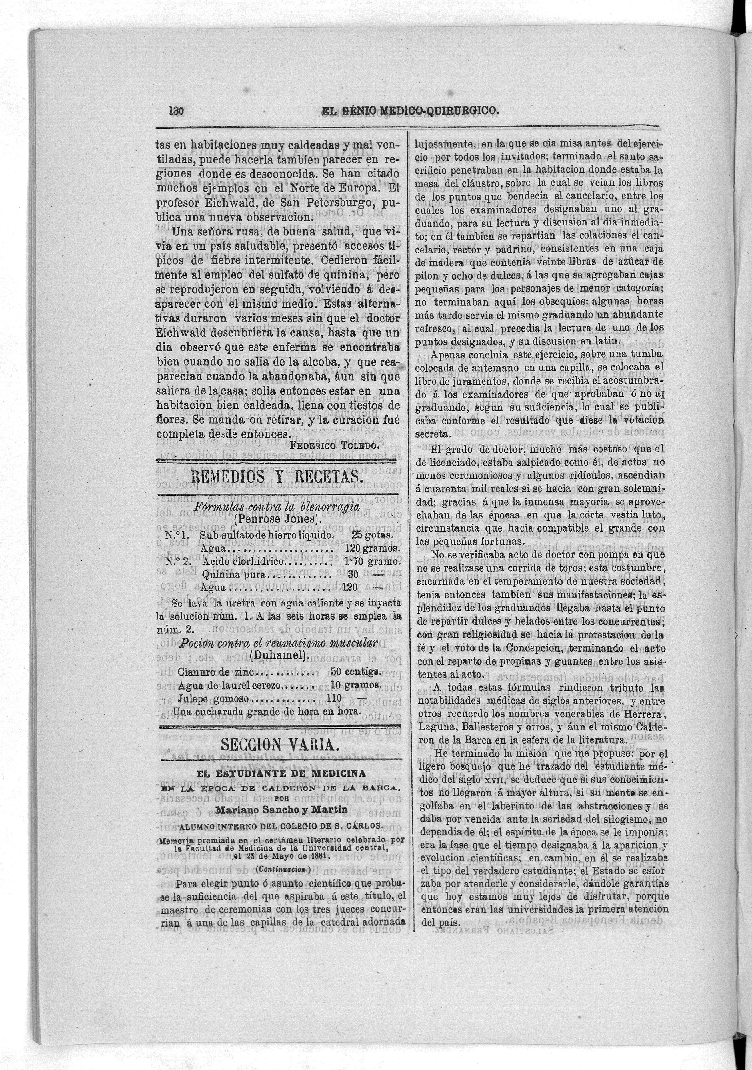 Parte de El Genio médico-quirúrgico : periódico de ciencias médicas ‐ [1882, Vol. 28, n. 1366-1393, 1340-1359.]