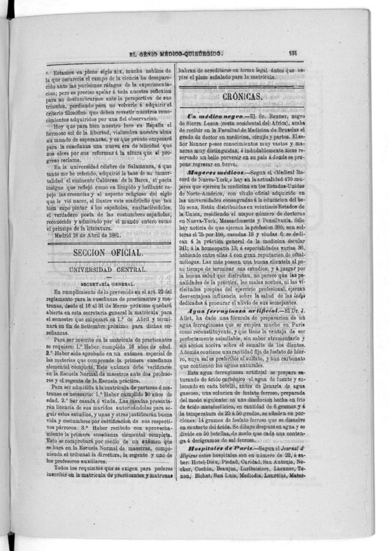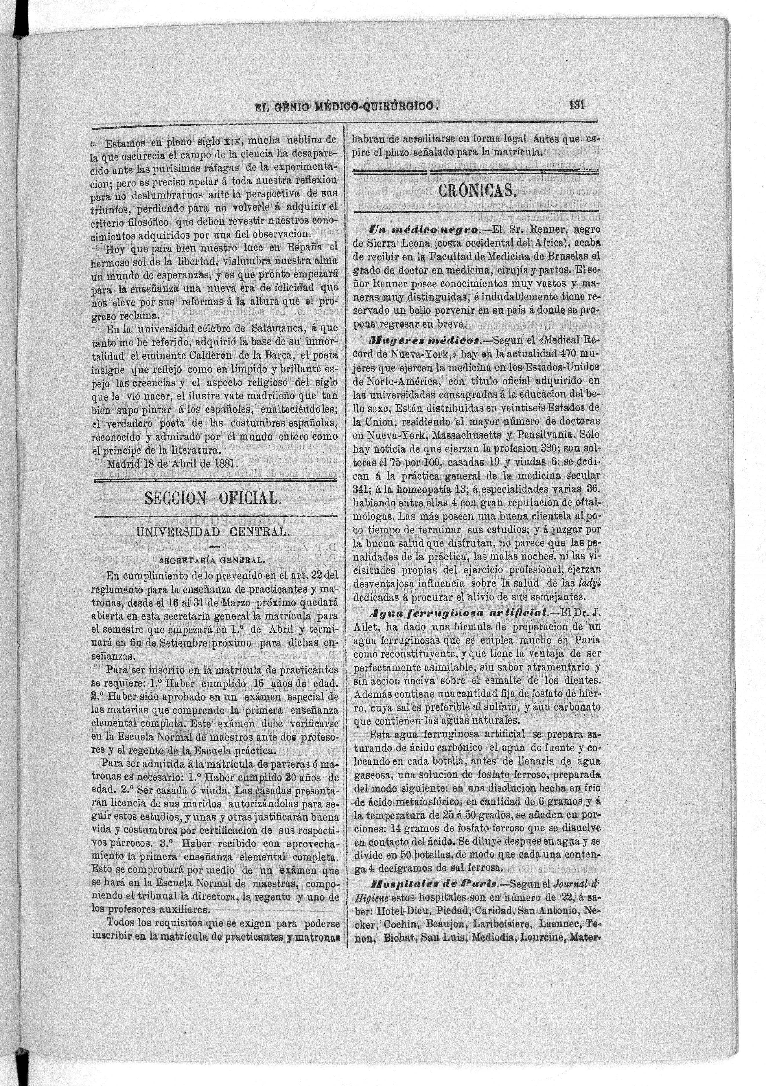 Parte de El Genio médico-quirúrgico : periódico de ciencias médicas ‐ [1882, Vol. 28, n. 1366-1393, 1340-1359.]