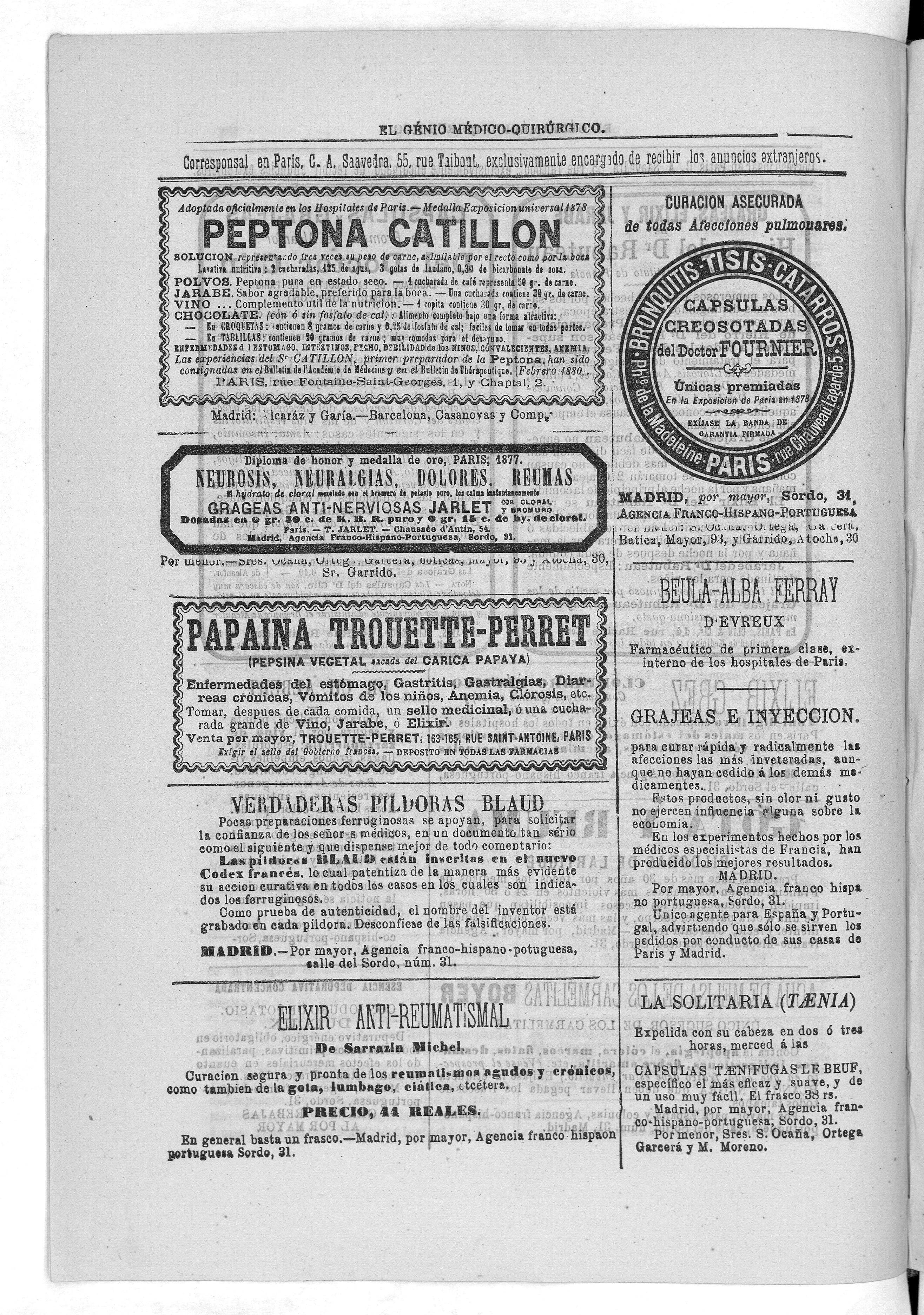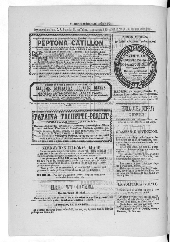 Parte de El Genio médico-quirúrgico : periódico de ciencias médicas ‐ [1882, Vol. 28, n. 1366-1393, 1340-1359.]