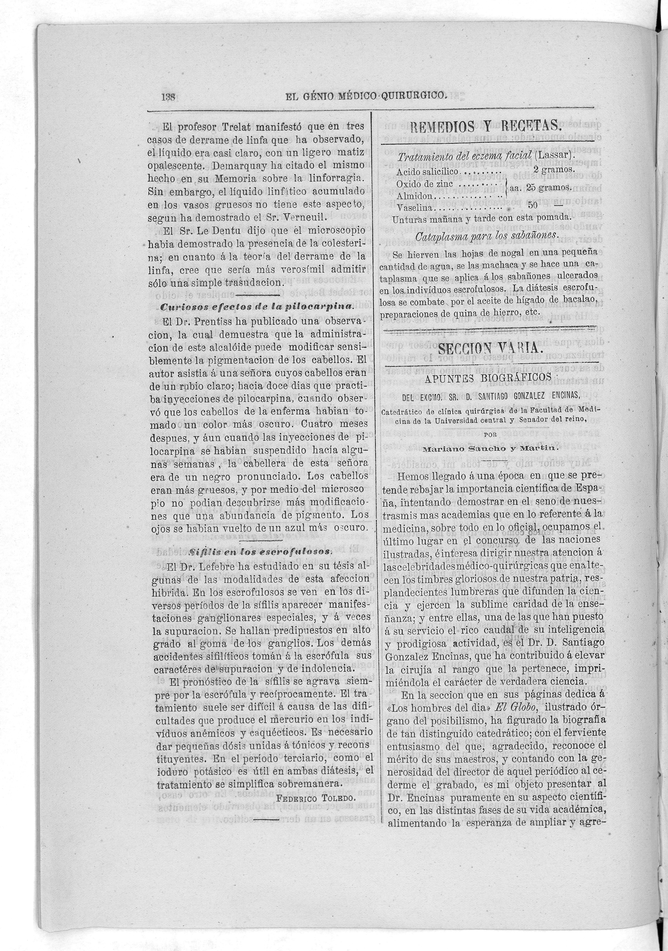 Parte de El Genio médico-quirúrgico : periódico de ciencias médicas ‐ [1882, Vol. 28, n. 1366-1393, 1340-1359.]