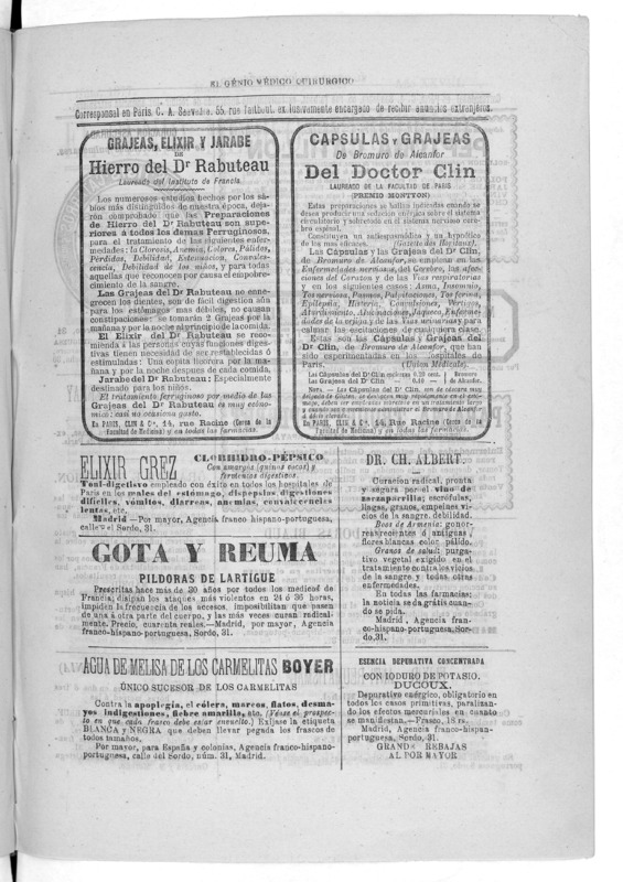 Parte de El Genio médico-quirúrgico : periódico de ciencias médicas ‐ [1882, Vol. 28, n. 1366-1393, 1340-1359.]