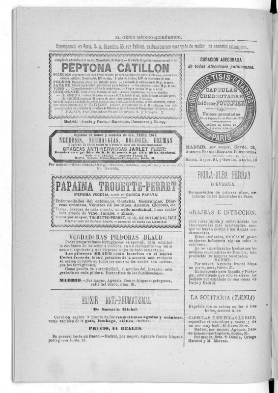Parte de El Genio médico-quirúrgico : periódico de ciencias médicas ‐ [1882, Vol. 28, n. 1366-1393, 1340-1359.]