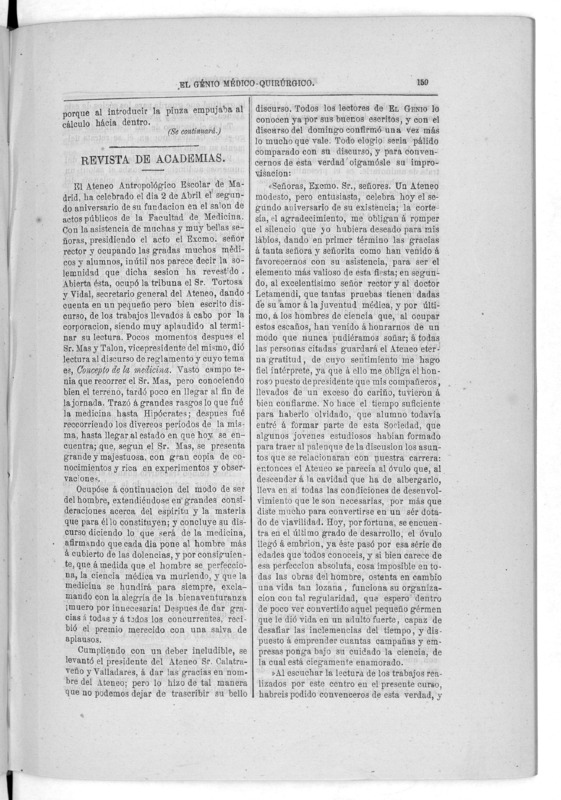 Parte de El Genio médico-quirúrgico : periódico de ciencias médicas ‐ [1882, Vol. 28, n. 1366-1393, 1340-1359.]