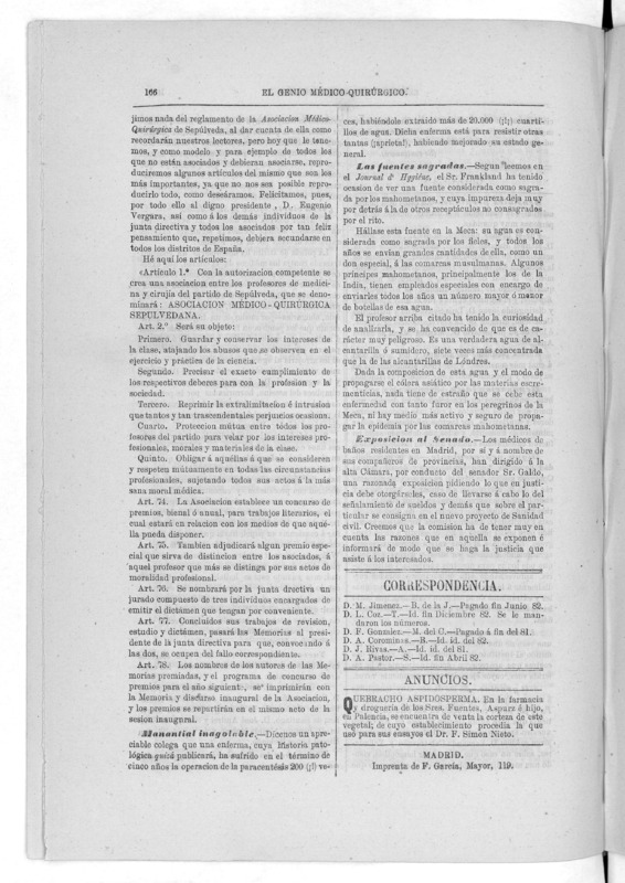Parte de El Genio médico-quirúrgico : periódico de ciencias médicas ‐ [1882, Vol. 28, n. 1366-1393, 1340-1359.]
