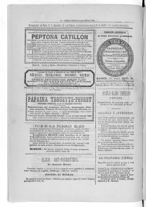 Parte de El Genio médico-quirúrgico : periódico de ciencias médicas ‐ [1882, Vol. 28, n. 1366-1393, 1340-1359.]