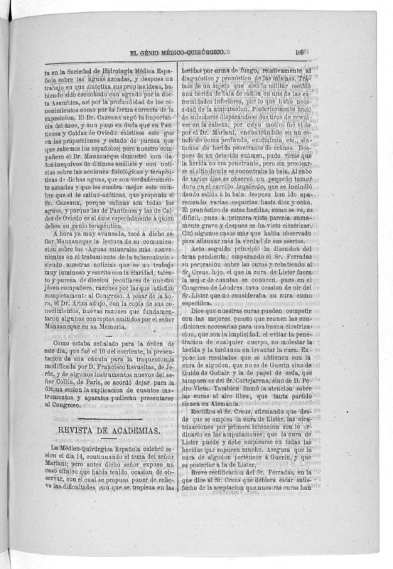 Parte de El Genio médico-quirúrgico : periódico de ciencias médicas ‐ [1882, Vol. 28, n. 1366-1393, 1340-1359.]