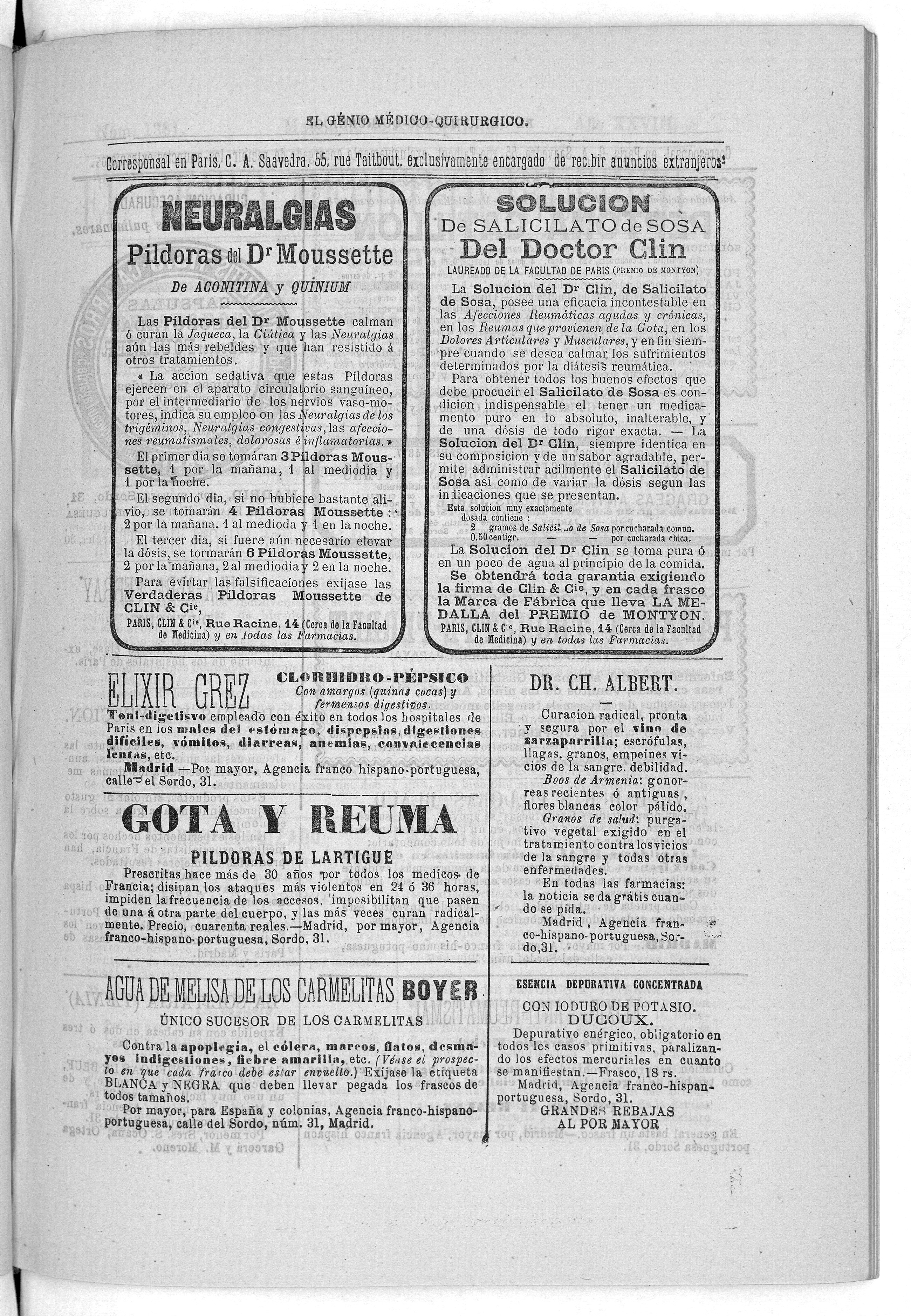 Parte de El Genio médico-quirúrgico : periódico de ciencias médicas ‐ [1882, Vol. 28, n. 1366-1393, 1340-1359.]