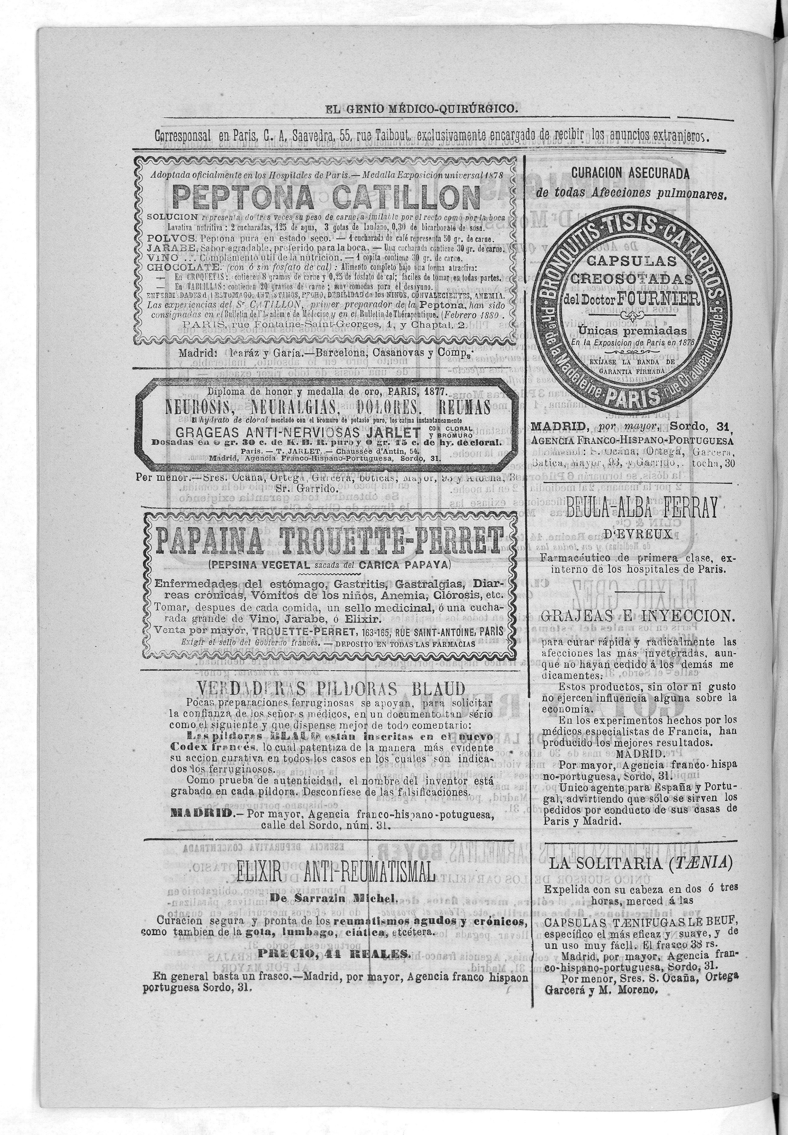 Parte de El Genio médico-quirúrgico : periódico de ciencias médicas ‐ [1882, Vol. 28, n. 1366-1393, 1340-1359.]