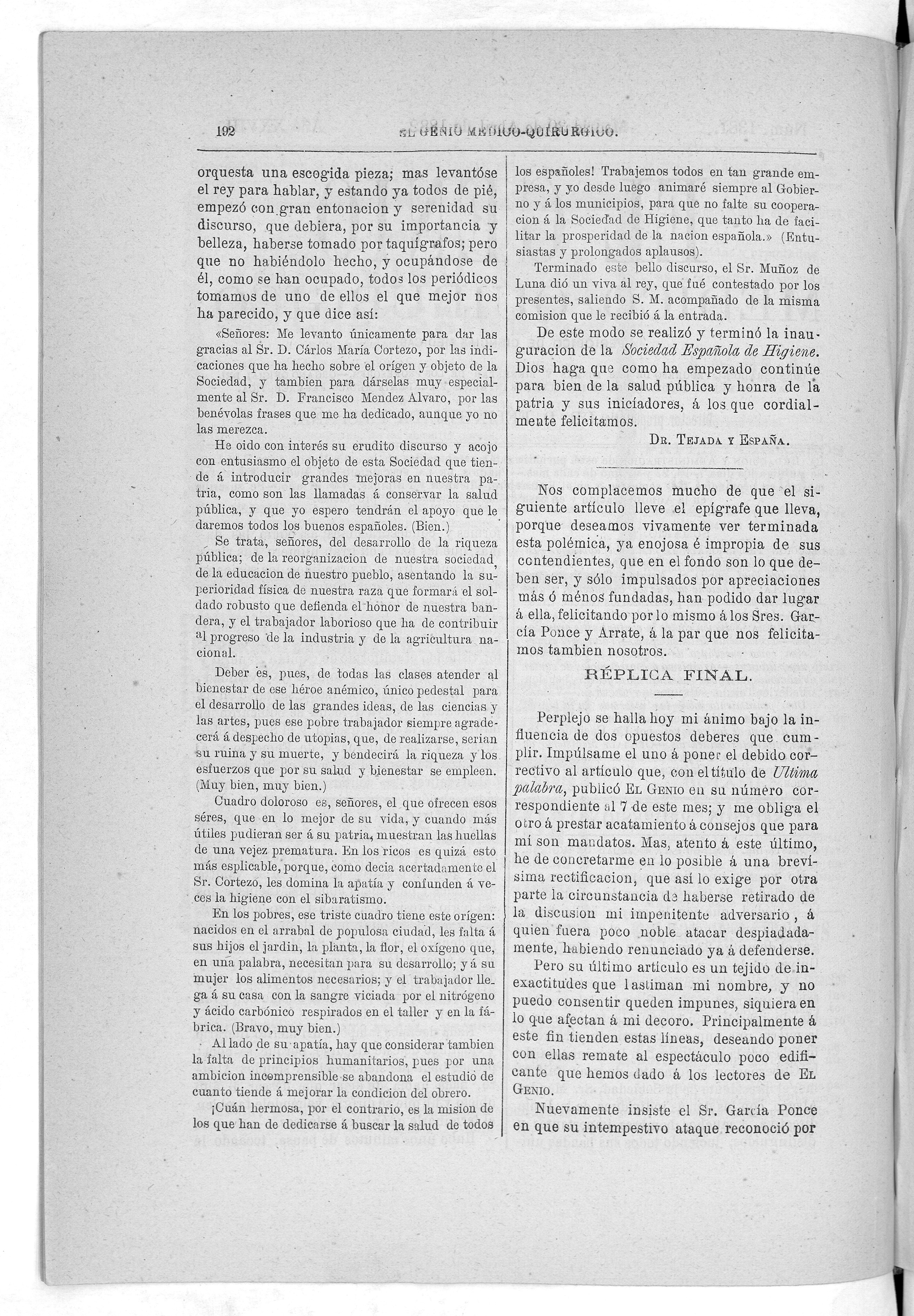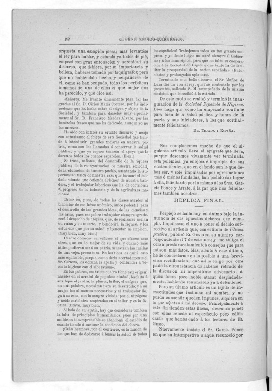 Parte de El Genio médico-quirúrgico : periódico de ciencias médicas ‐ [1882, Vol. 28, n. 1366-1393, 1340-1359.]
