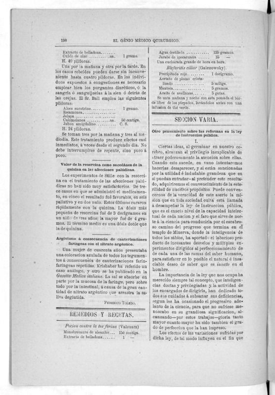Parte de El Genio médico-quirúrgico : periódico de ciencias médicas ‐ [1882, Vol. 28, n. 1366-1393, 1340-1359.]