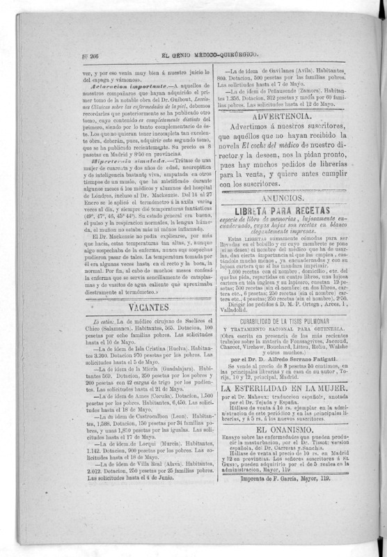 Parte de El Genio médico-quirúrgico : periódico de ciencias médicas ‐ [1882, Vol. 28, n. 1366-1393, 1340-1359.]