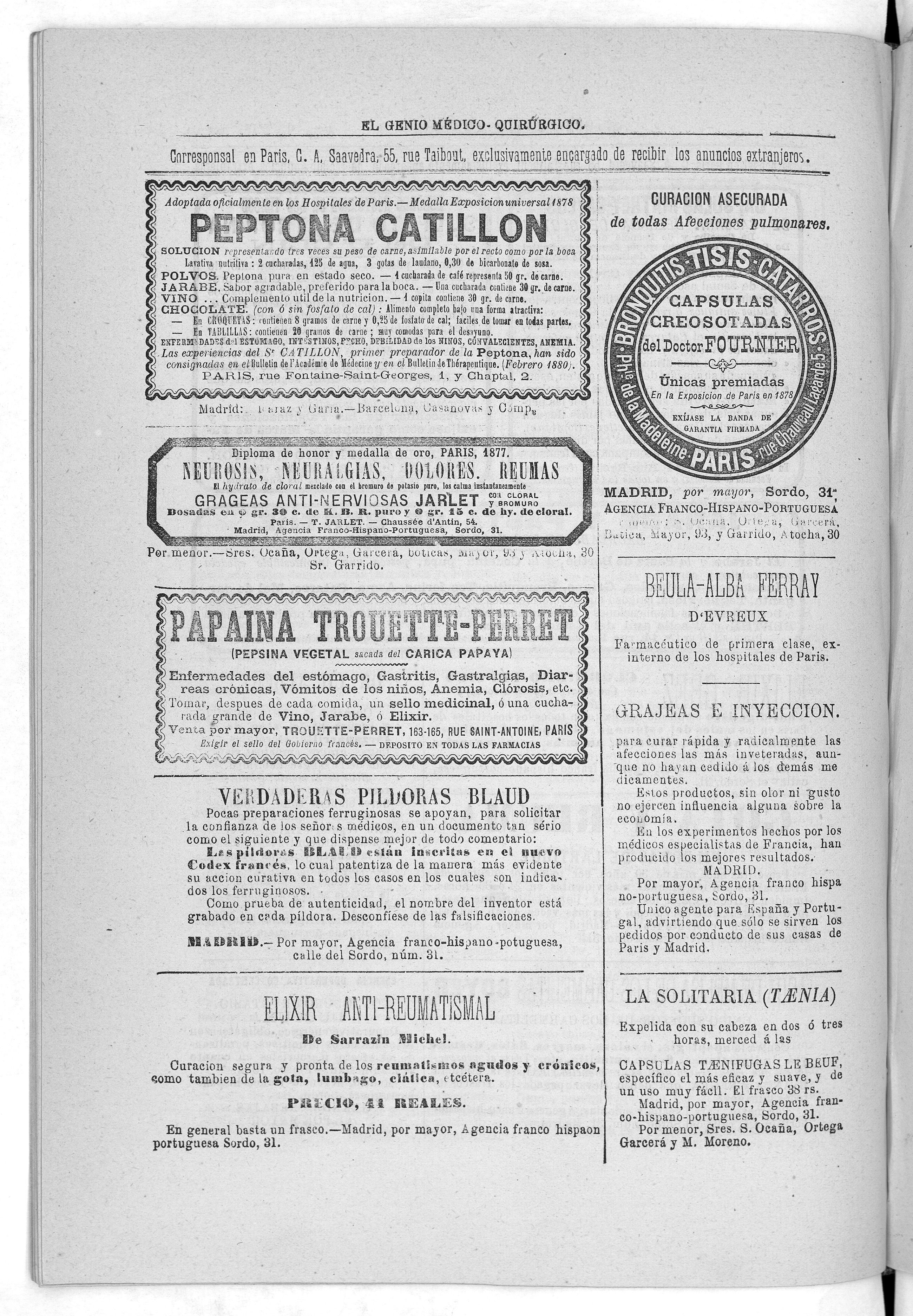 Parte de El Genio médico-quirúrgico : periódico de ciencias médicas ‐ [1882, Vol. 28, n. 1366-1393, 1340-1359.]