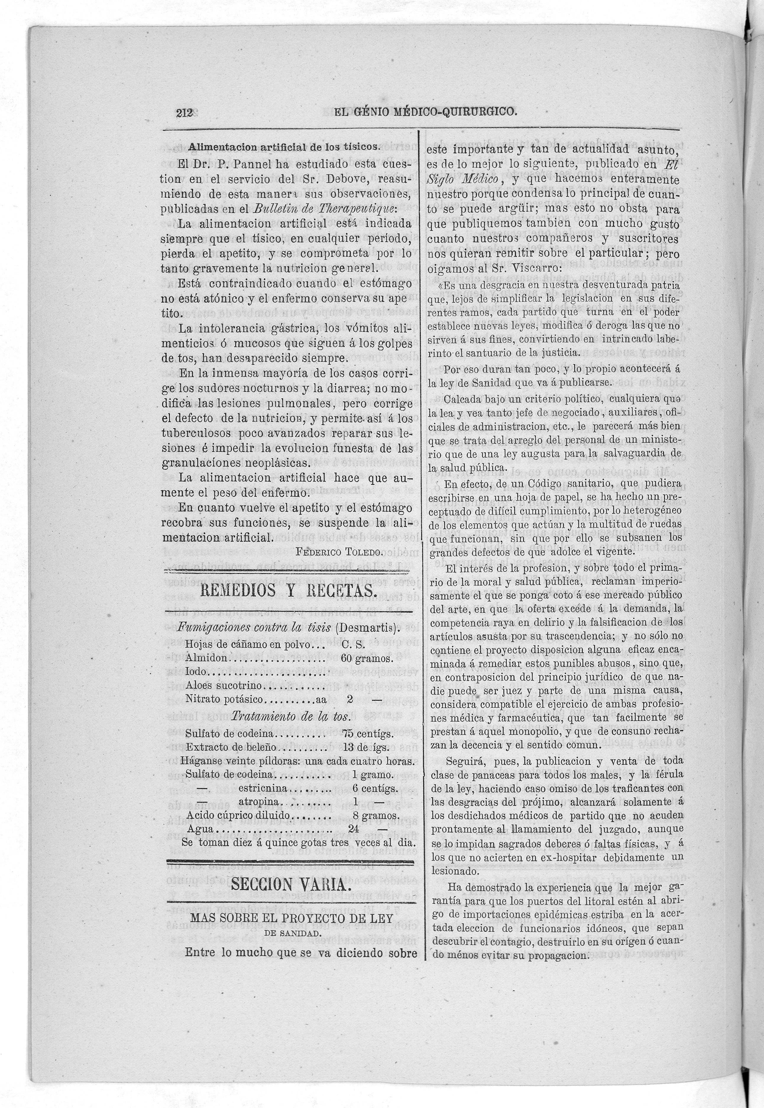 Parte de El Genio médico-quirúrgico : periódico de ciencias médicas ‐ [1882, Vol. 28, n. 1366-1393, 1340-1359.]