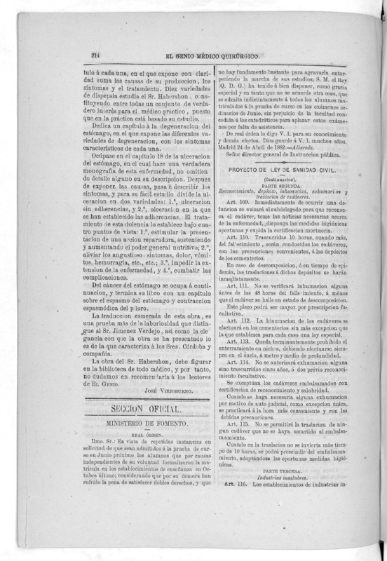 Parte de El Genio médico-quirúrgico : periódico de ciencias médicas ‐ [1882, Vol. 28, n. 1366-1393, 1340-1359.]
