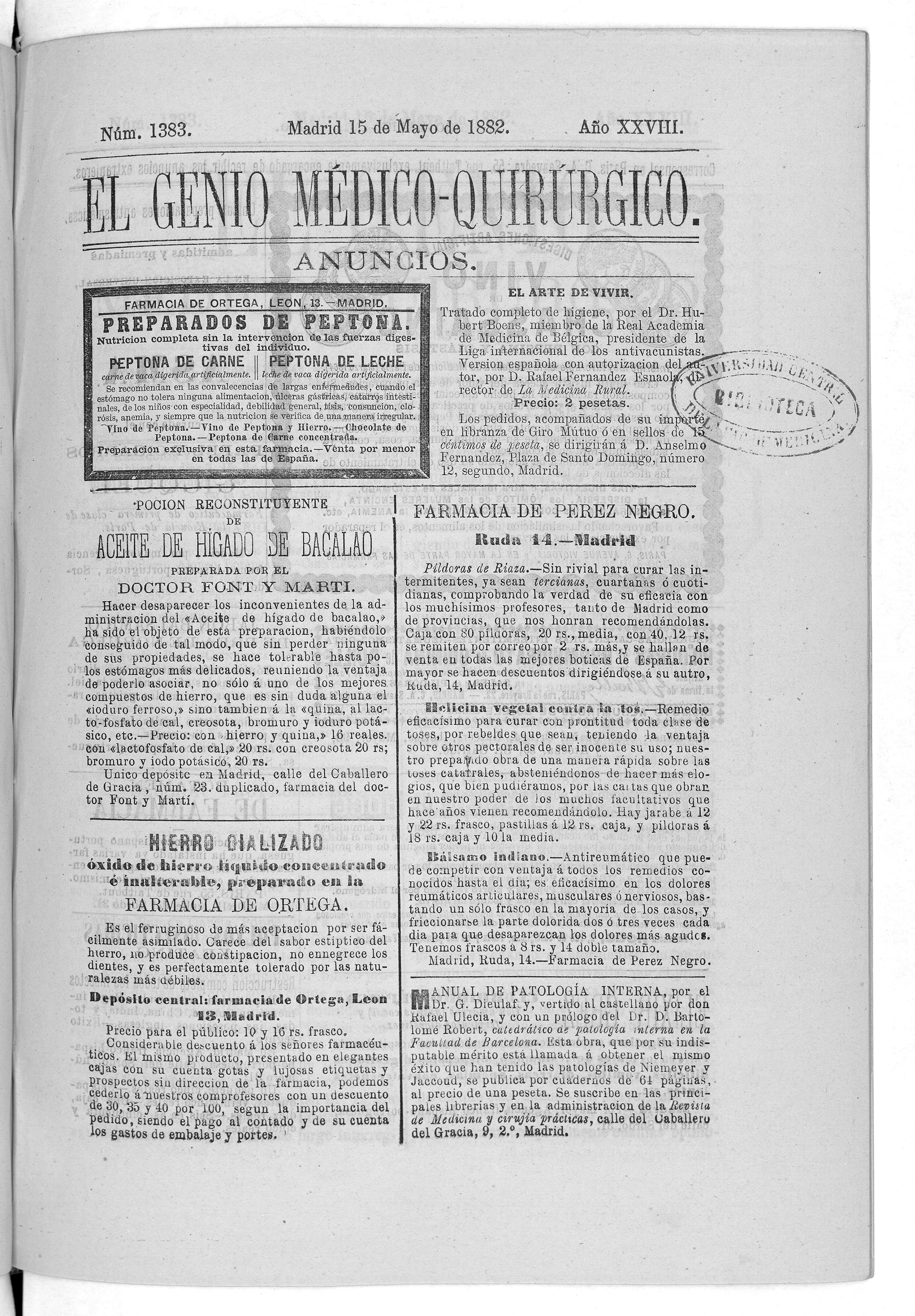 Parte de El Genio médico-quirúrgico : periódico de ciencias médicas ‐ [1882, Vol. 28, n. 1366-1393, 1340-1359.]