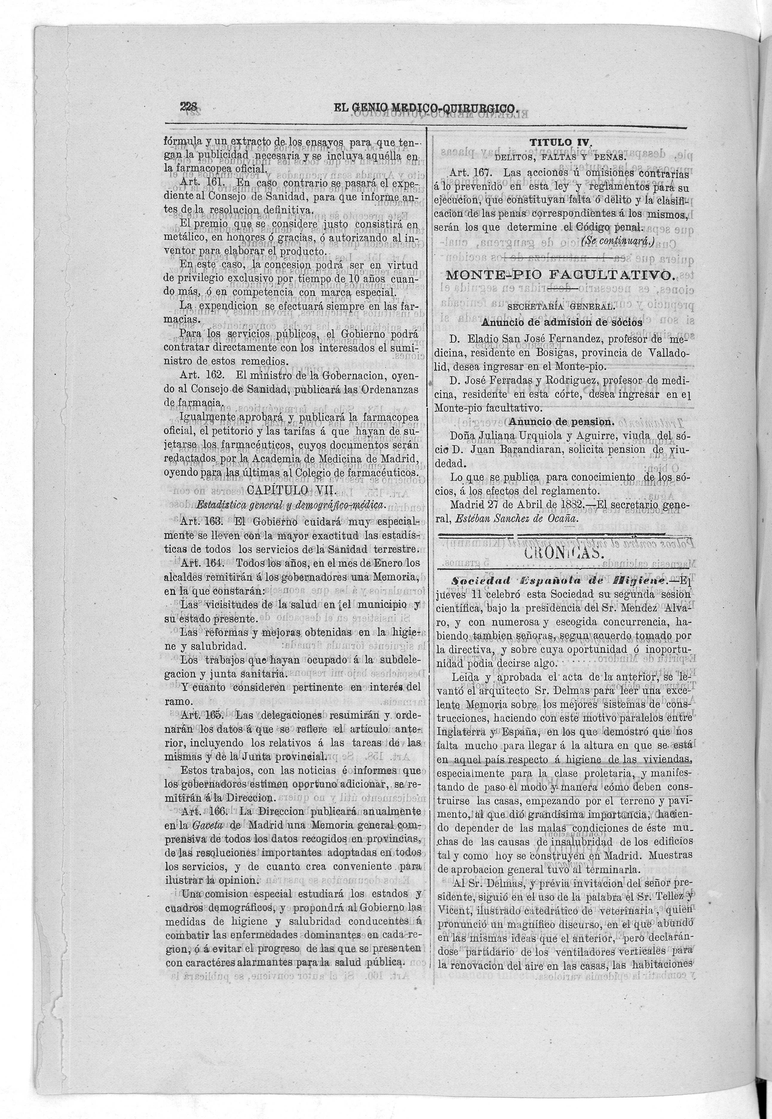Parte de El Genio médico-quirúrgico : periódico de ciencias médicas ‐ [1882, Vol. 28, n. 1366-1393, 1340-1359.]