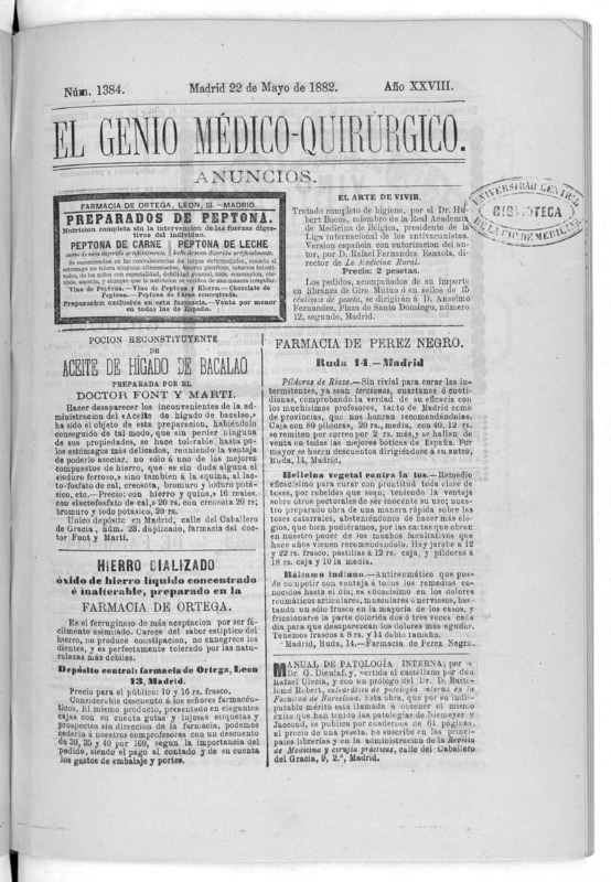 Parte de El Genio médico-quirúrgico : periódico de ciencias médicas ‐ [1882, Vol. 28, n. 1366-1393, 1340-1359.]