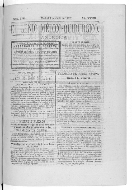 Parte de El Genio médico-quirúrgico : periódico de ciencias médicas ‐ [1882, Vol. 28, n. 1366-1393, 1340-1359.]