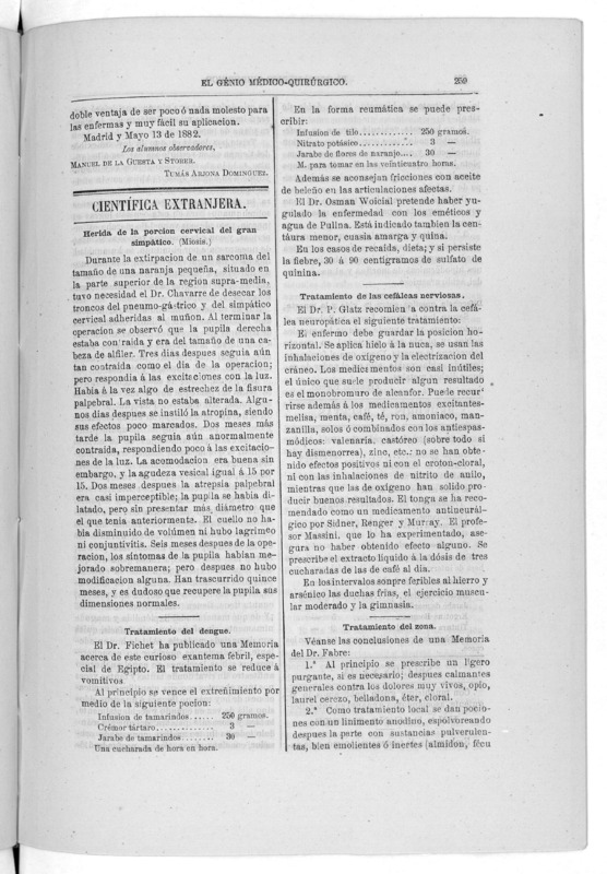 Parte de El Genio médico-quirúrgico : periódico de ciencias médicas ‐ [1882, Vol. 28, n. 1366-1393, 1340-1359.]