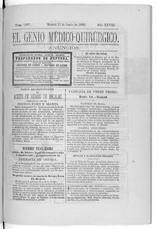 Parte de El Genio médico-quirúrgico : periódico de ciencias médicas ‐ [1882, Vol. 28, n. 1366-1393, 1340-1359.]