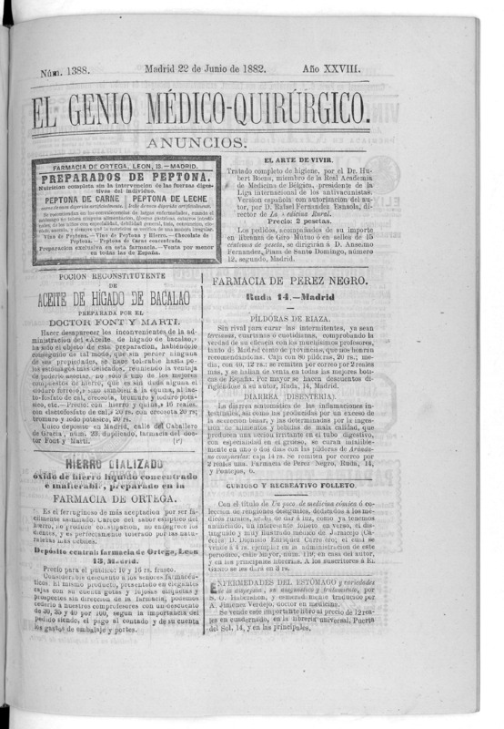 Parte de El Genio médico-quirúrgico : periódico de ciencias médicas ‐ [1882, Vol. 28, n. 1366-1393, 1340-1359.]