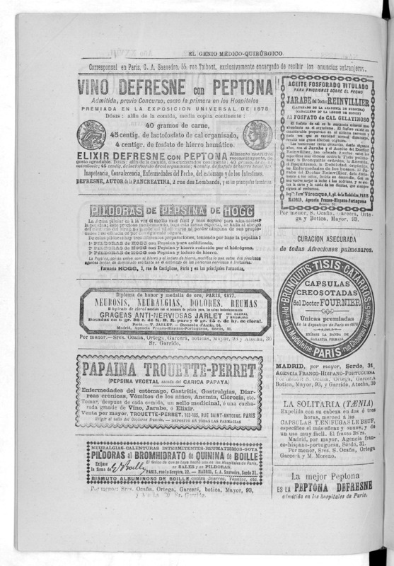 Parte de El Genio médico-quirúrgico : periódico de ciencias médicas ‐ [1882, Vol. 28, n. 1366-1393, 1340-1359.]