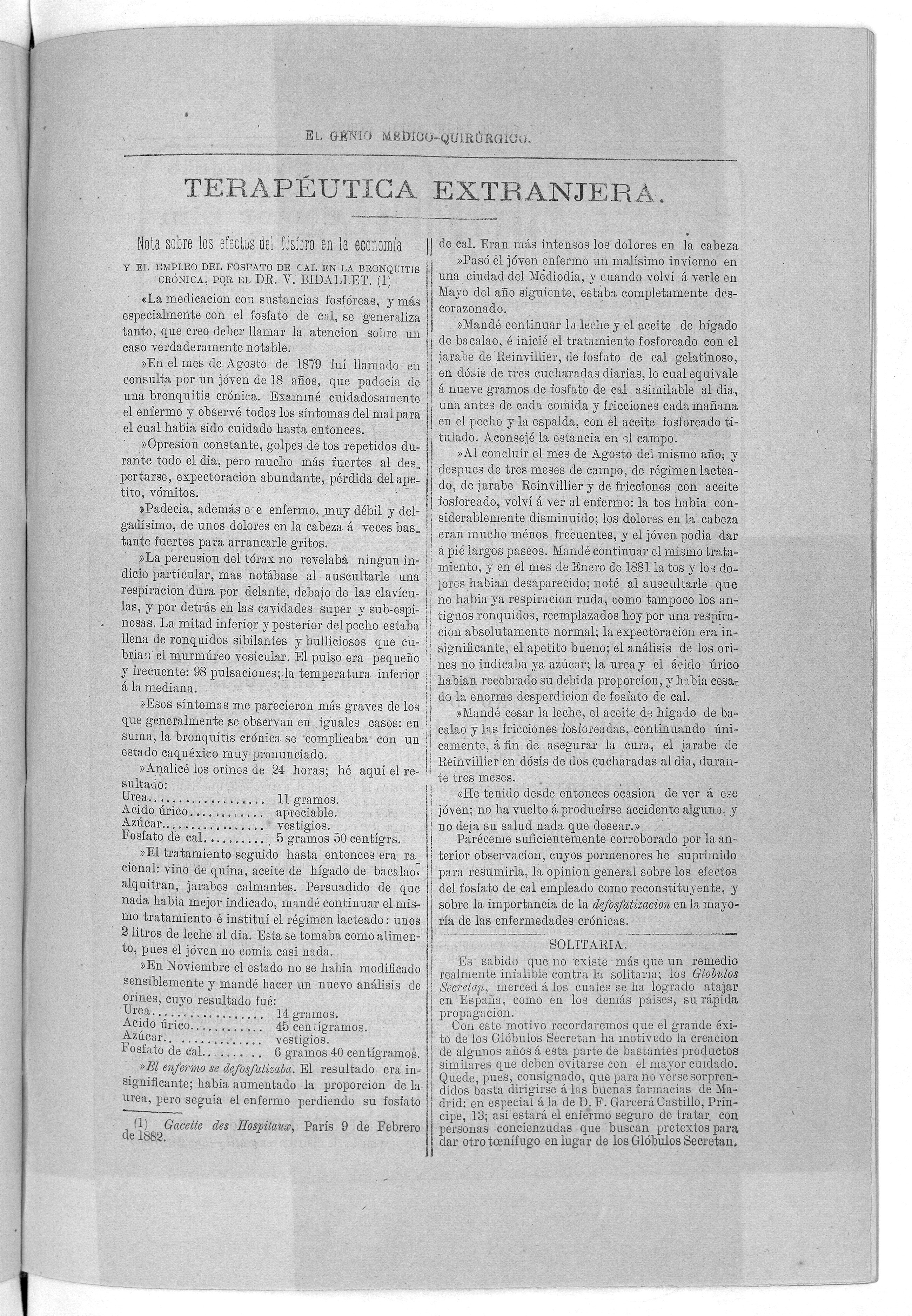 Parte de El Genio médico-quirúrgico : periódico de ciencias médicas ‐ [1882, Vol. 28, n. 1366-1393, 1340-1359.]