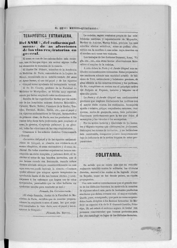 Parte de El Genio médico-quirúrgico : periódico de ciencias médicas ‐ [1882, Vol. 28, n. 1366-1393, 1340-1359.]