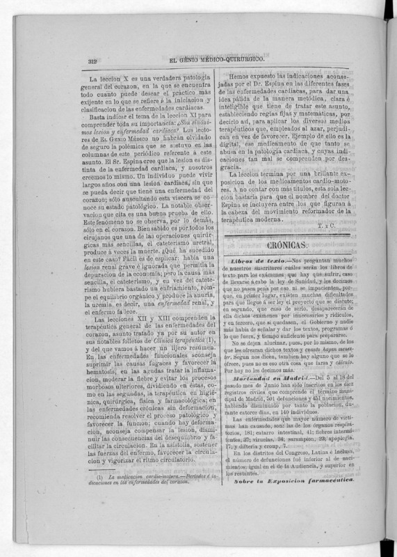 Parte de El Genio médico-quirúrgico : periódico de ciencias médicas ‐ [1882, Vol. 28, n. 1366-1393, 1340-1359.]