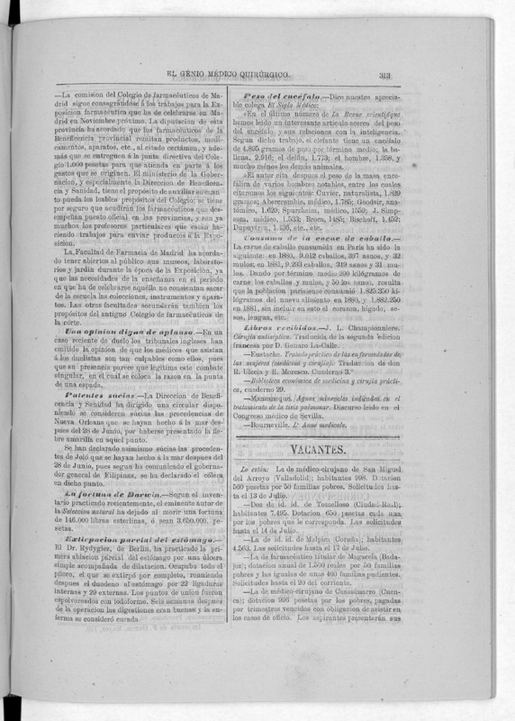 Parte de El Genio médico-quirúrgico : periódico de ciencias médicas ‐ [1882, Vol. 28, n. 1366-1393, 1340-1359.]