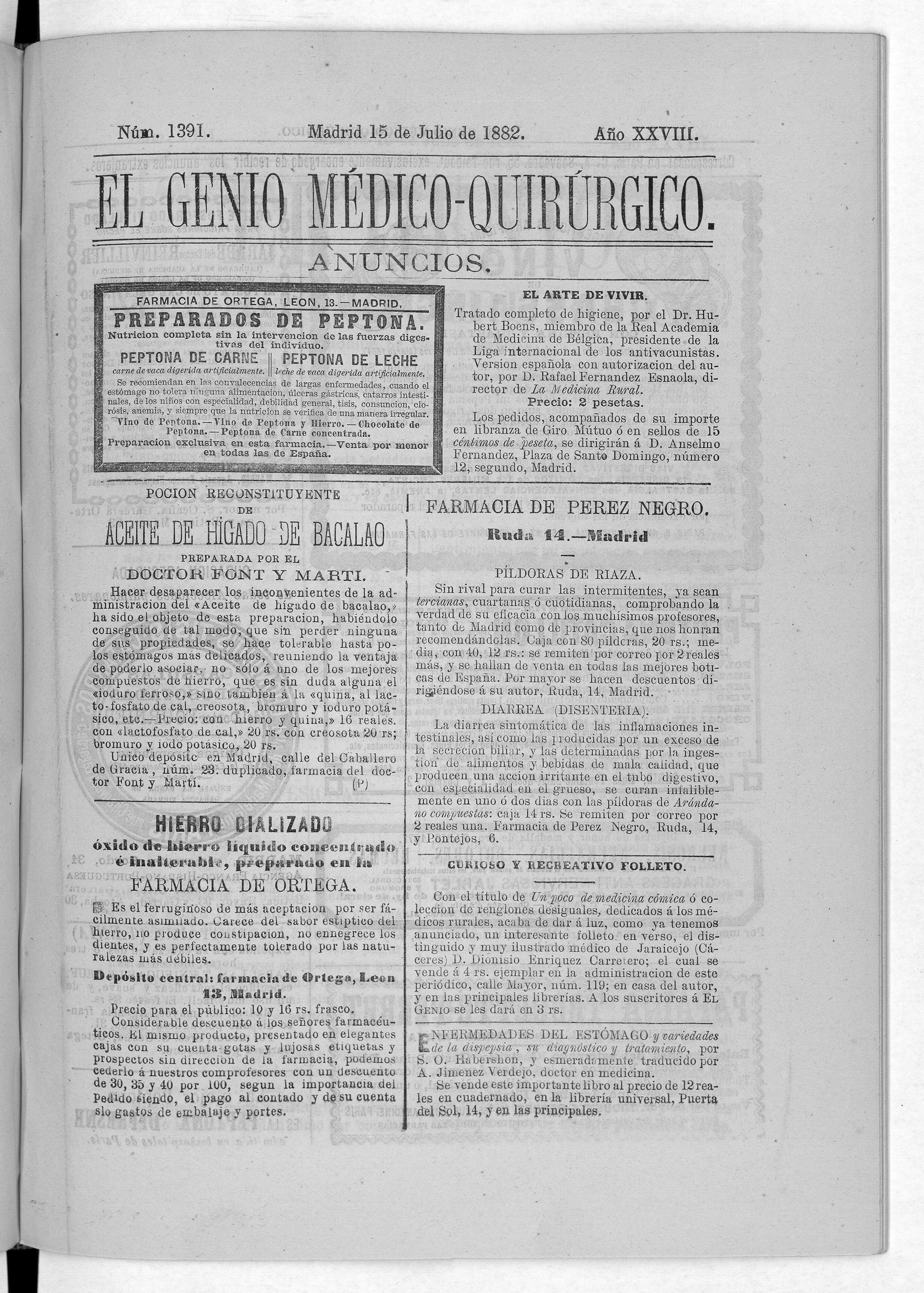Parte de El Genio médico-quirúrgico : periódico de ciencias médicas ‐ [1882, Vol. 28, n. 1366-1393, 1340-1359.]