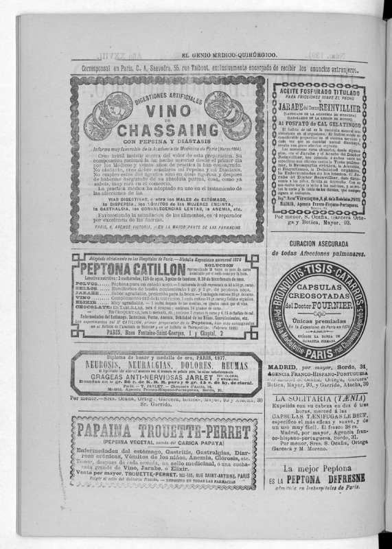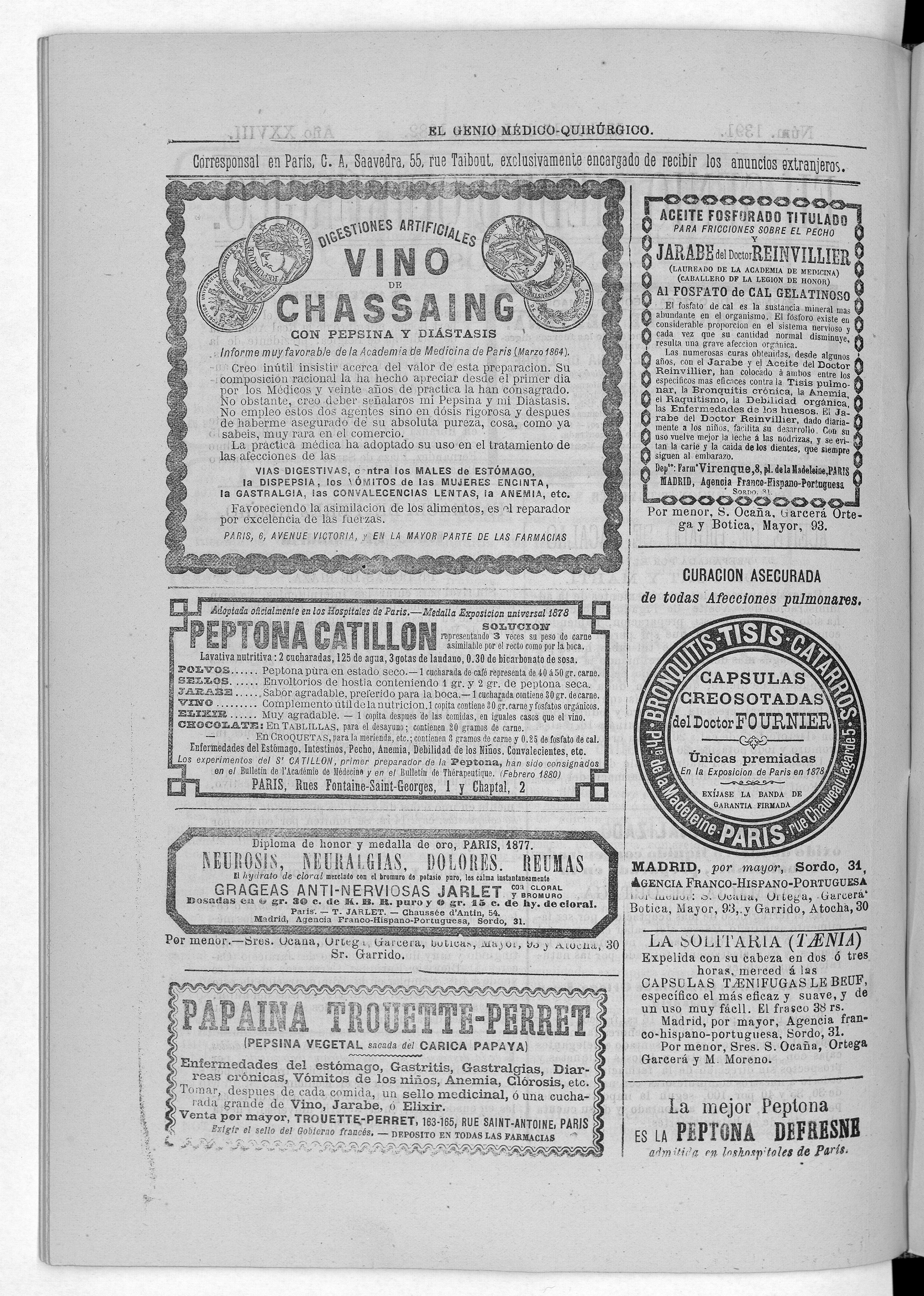 Parte de El Genio médico-quirúrgico : periódico de ciencias médicas ‐ [1882, Vol. 28, n. 1366-1393, 1340-1359.]