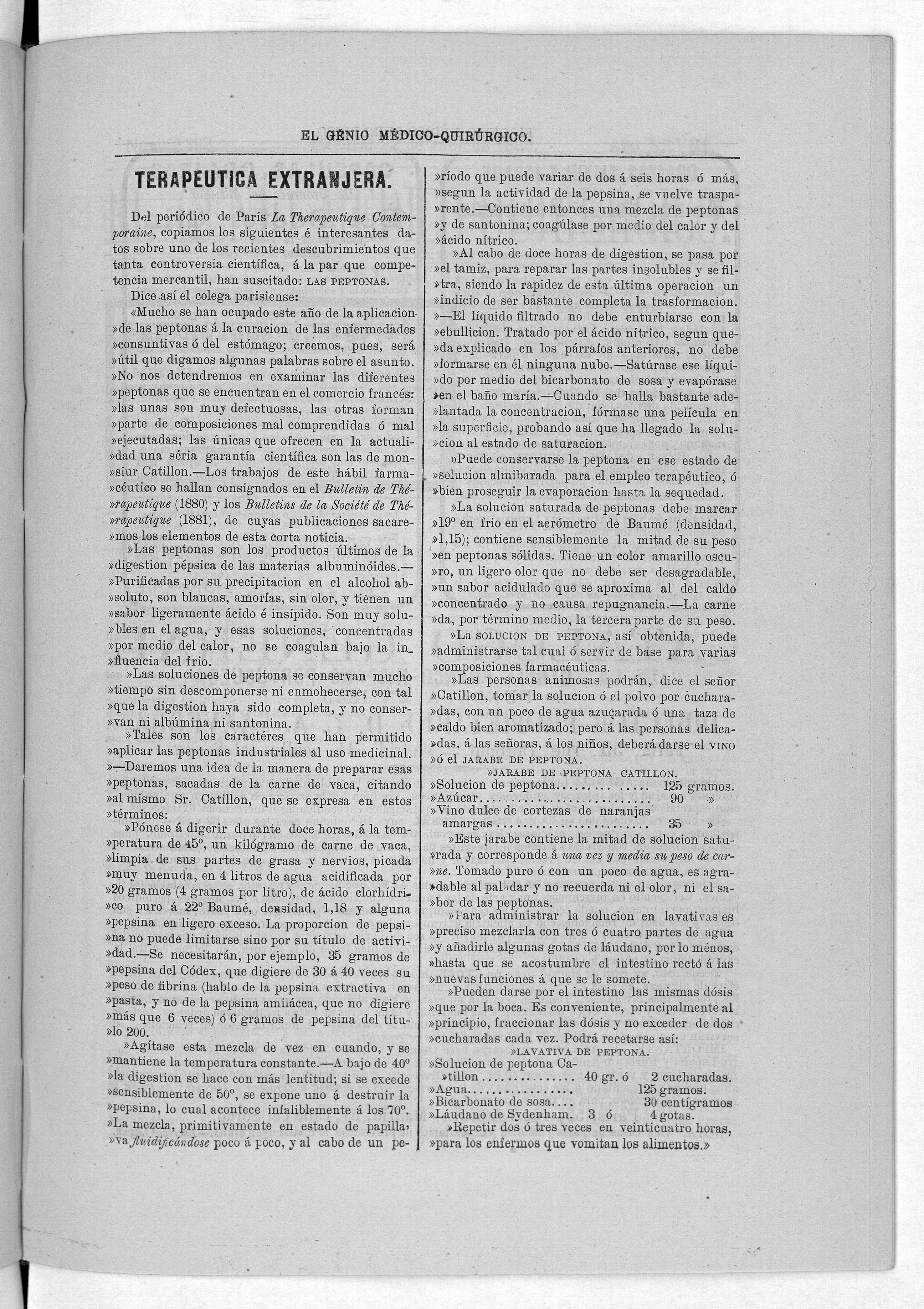 Parte de El Genio médico-quirúrgico : periódico de ciencias médicas ‐ [1882, Vol. 28, n. 1366-1393, 1340-1359.]
