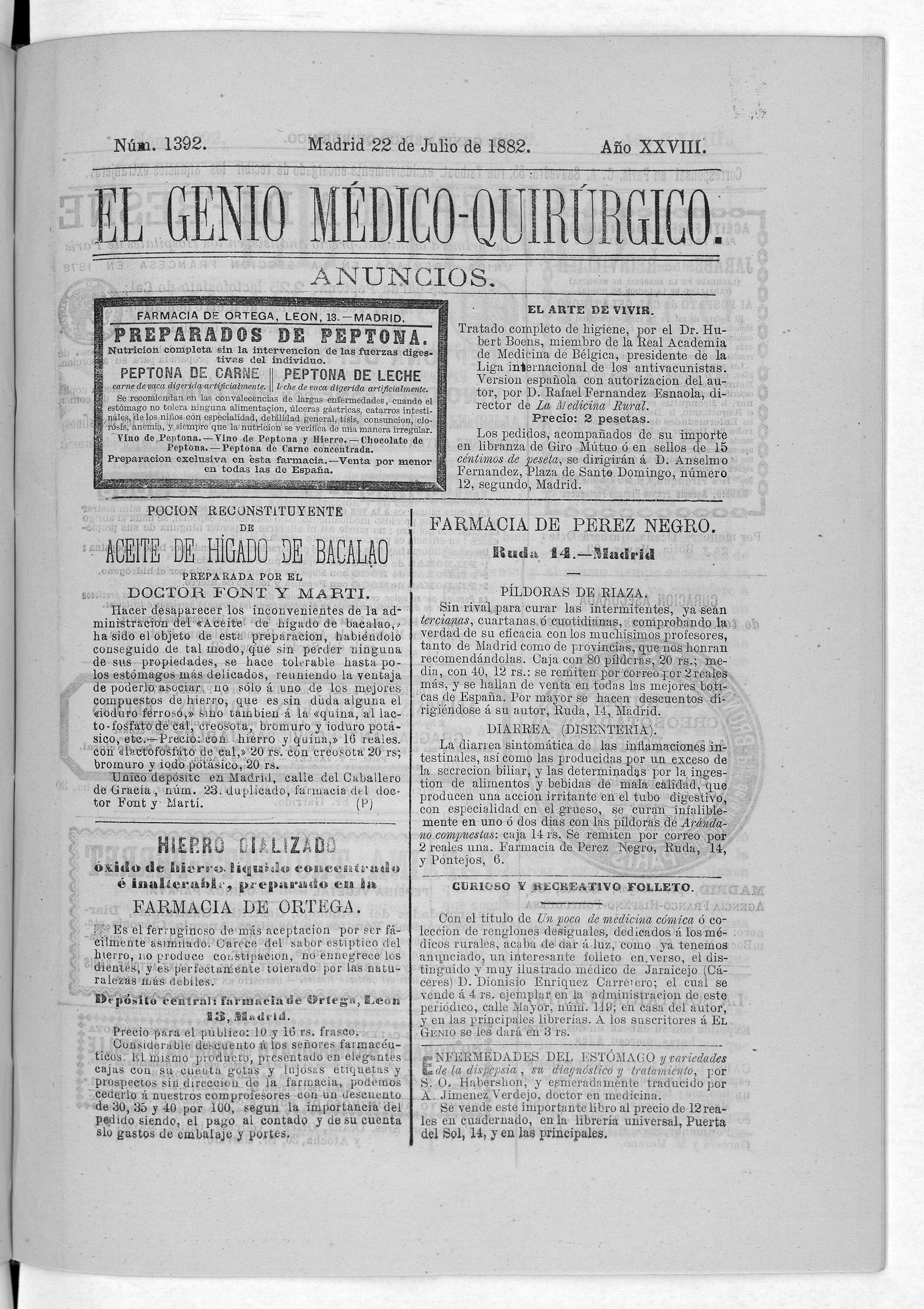 Parte de El Genio médico-quirúrgico : periódico de ciencias médicas ‐ [1882, Vol. 28, n. 1366-1393, 1340-1359.]