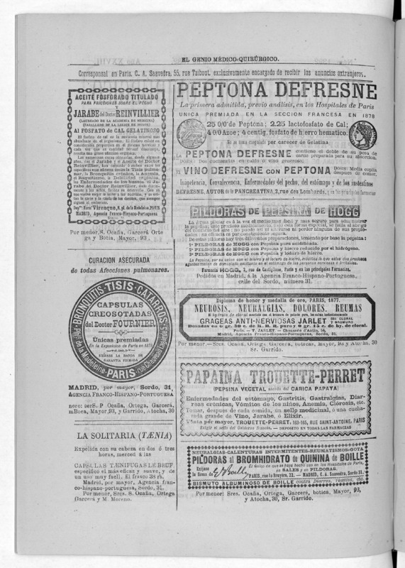 Parte de El Genio médico-quirúrgico : periódico de ciencias médicas ‐ [1882, Vol. 28, n. 1366-1393, 1340-1359.]