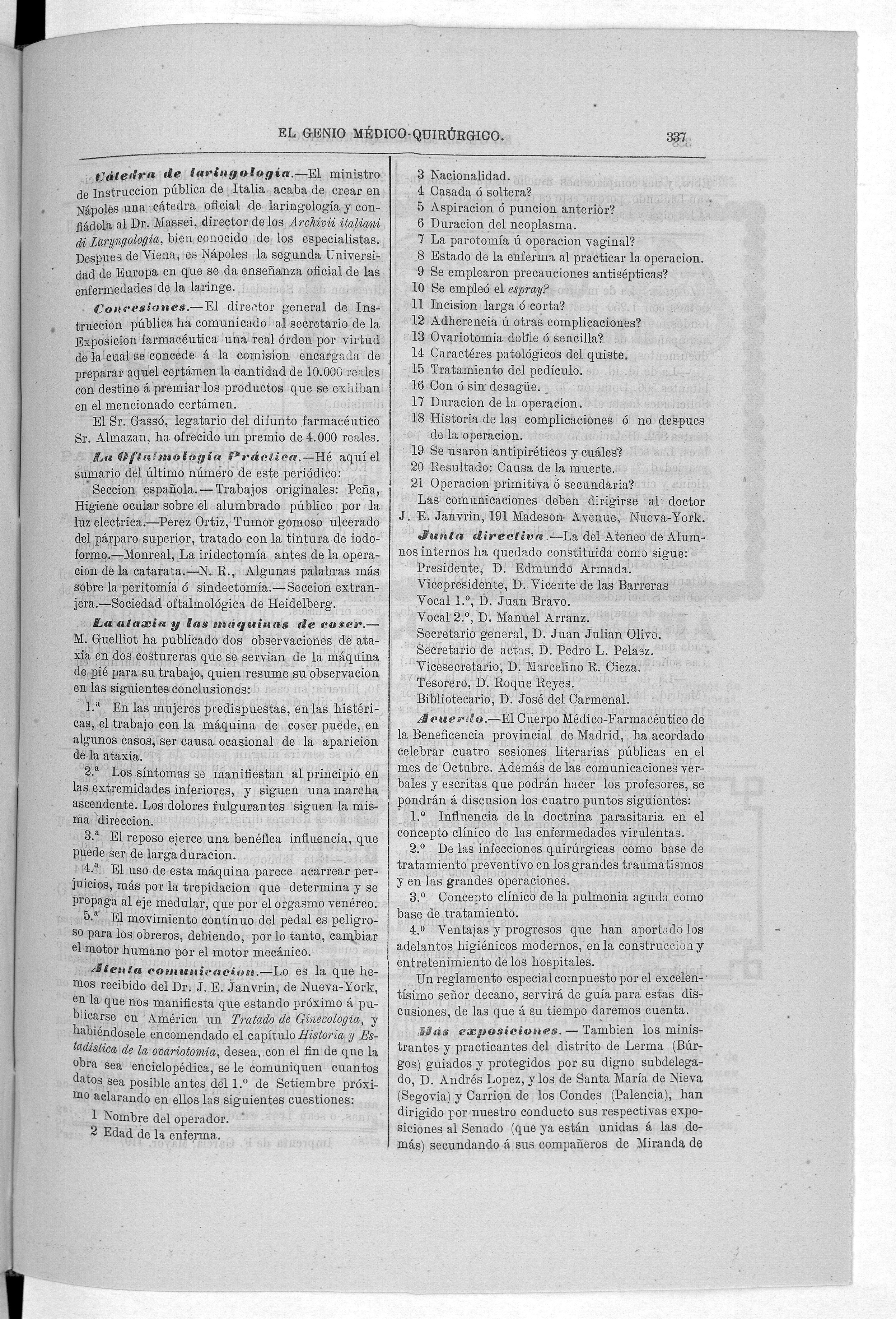 Parte de El Genio médico-quirúrgico : periódico de ciencias médicas ‐ [1882, Vol. 28, n. 1366-1393, 1340-1359.]