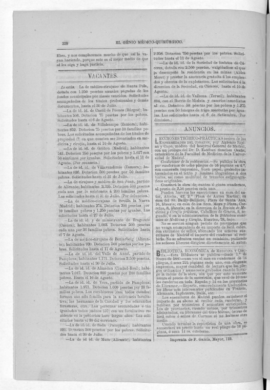 Parte de El Genio médico-quirúrgico : periódico de ciencias médicas ‐ [1882, Vol. 28, n. 1366-1393, 1340-1359.]