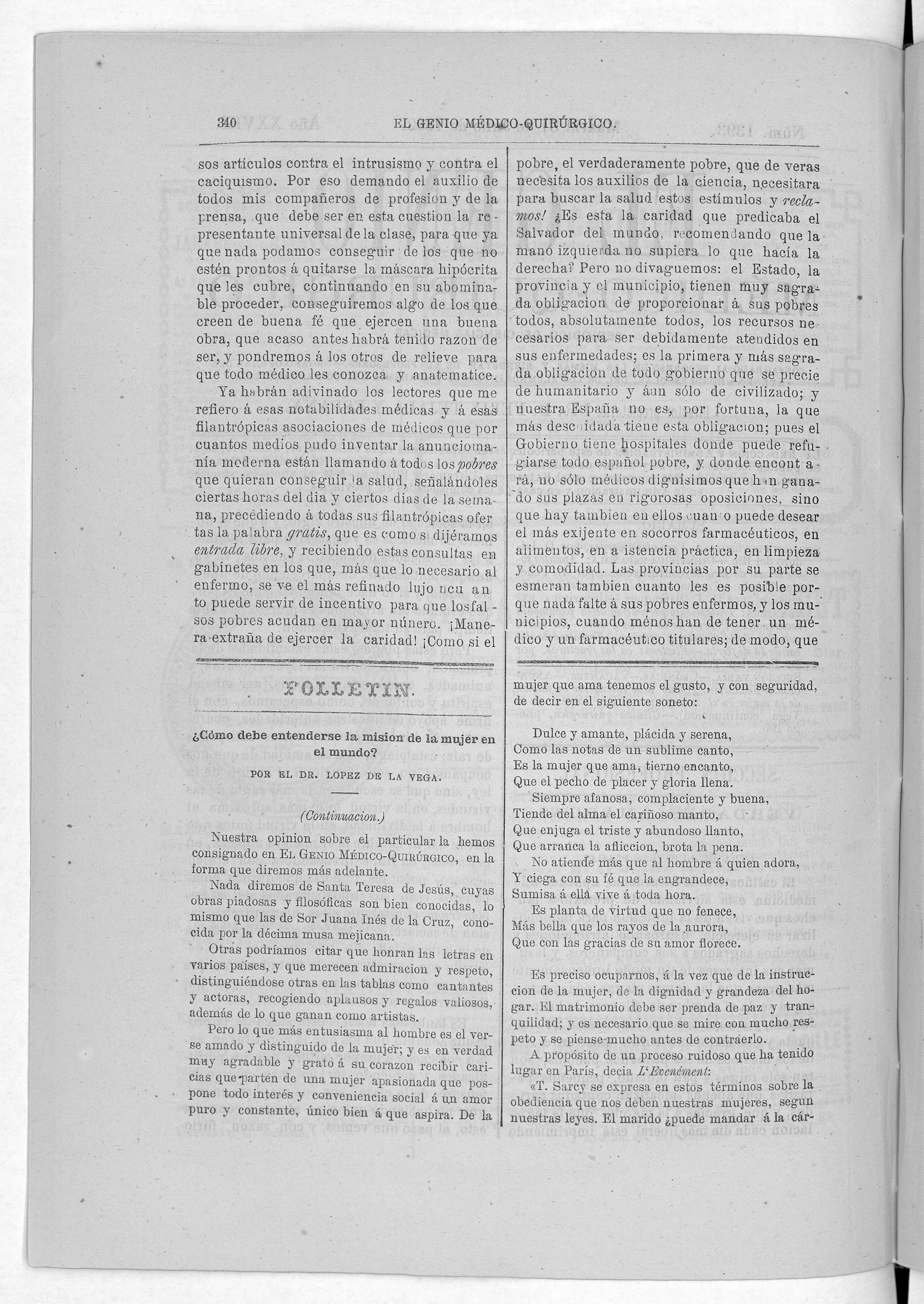 Parte de El Genio médico-quirúrgico : periódico de ciencias médicas ‐ [1882, Vol. 28, n. 1366-1393, 1340-1359.]