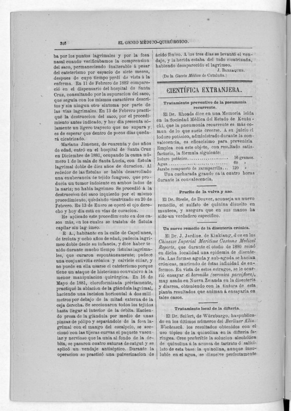Parte de El Genio médico-quirúrgico : periódico de ciencias médicas ‐ [1882, Vol. 28, n. 1366-1393, 1340-1359.]