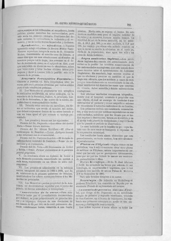 Parte de El Genio médico-quirúrgico : periódico de ciencias médicas ‐ [1882, Vol. 28, n. 1366-1393, 1340-1359.]