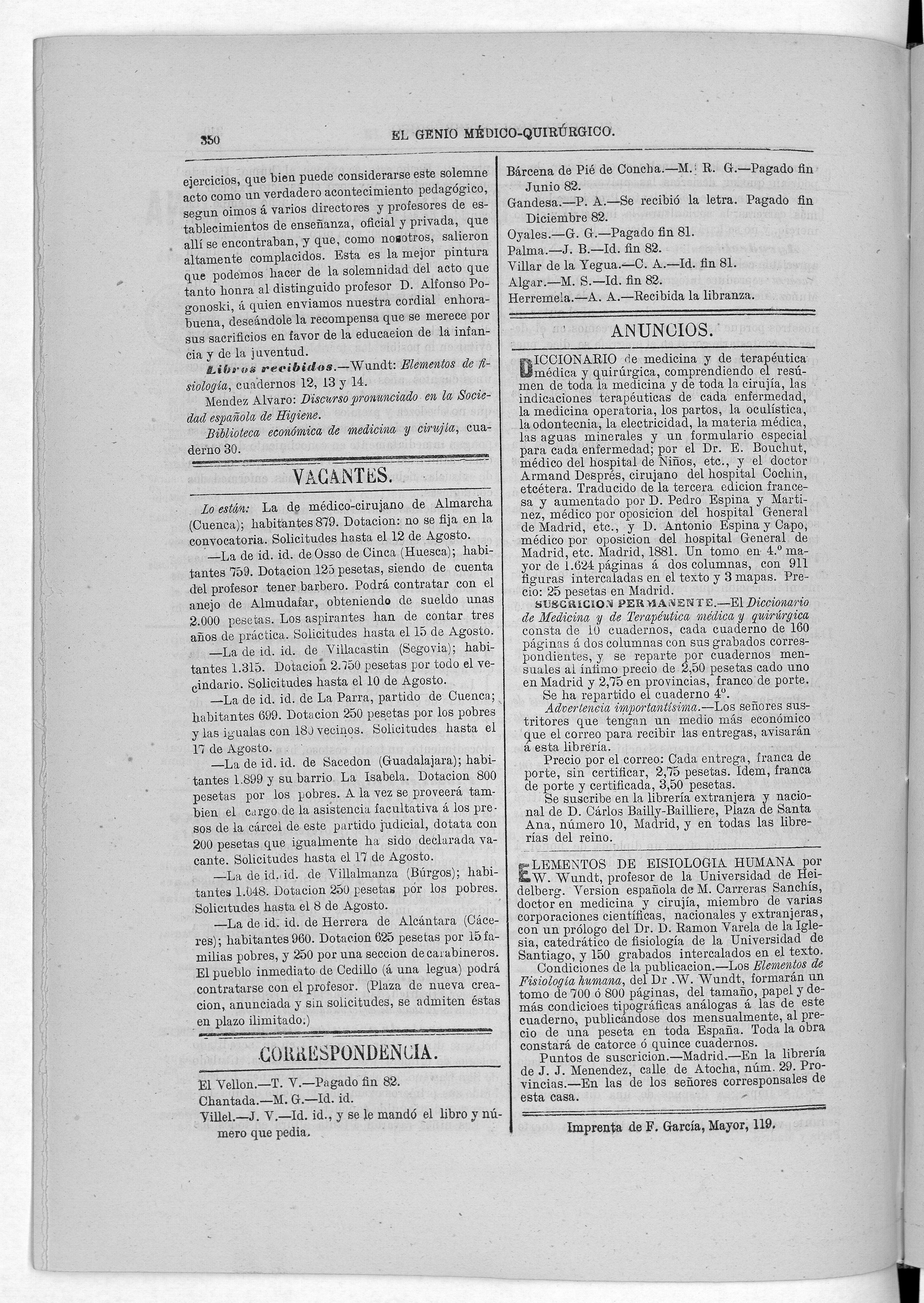 Parte de El Genio médico-quirúrgico : periódico de ciencias médicas ‐ [1882, Vol. 28, n. 1366-1393, 1340-1359.]