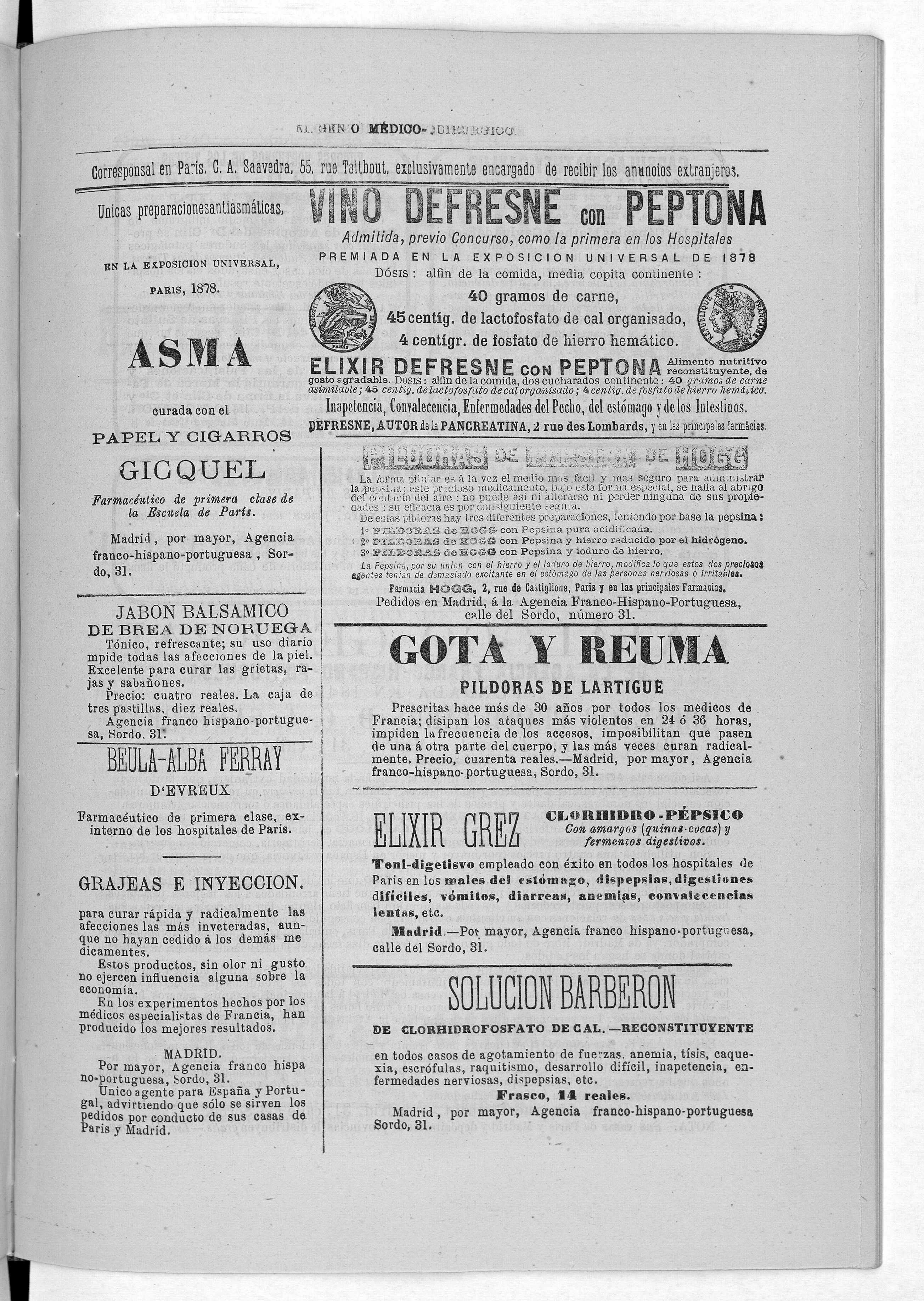 Parte de El Genio médico-quirúrgico : periódico de ciencias médicas ‐ [1882, Vol. 28, n. 1366-1393, 1340-1359.]