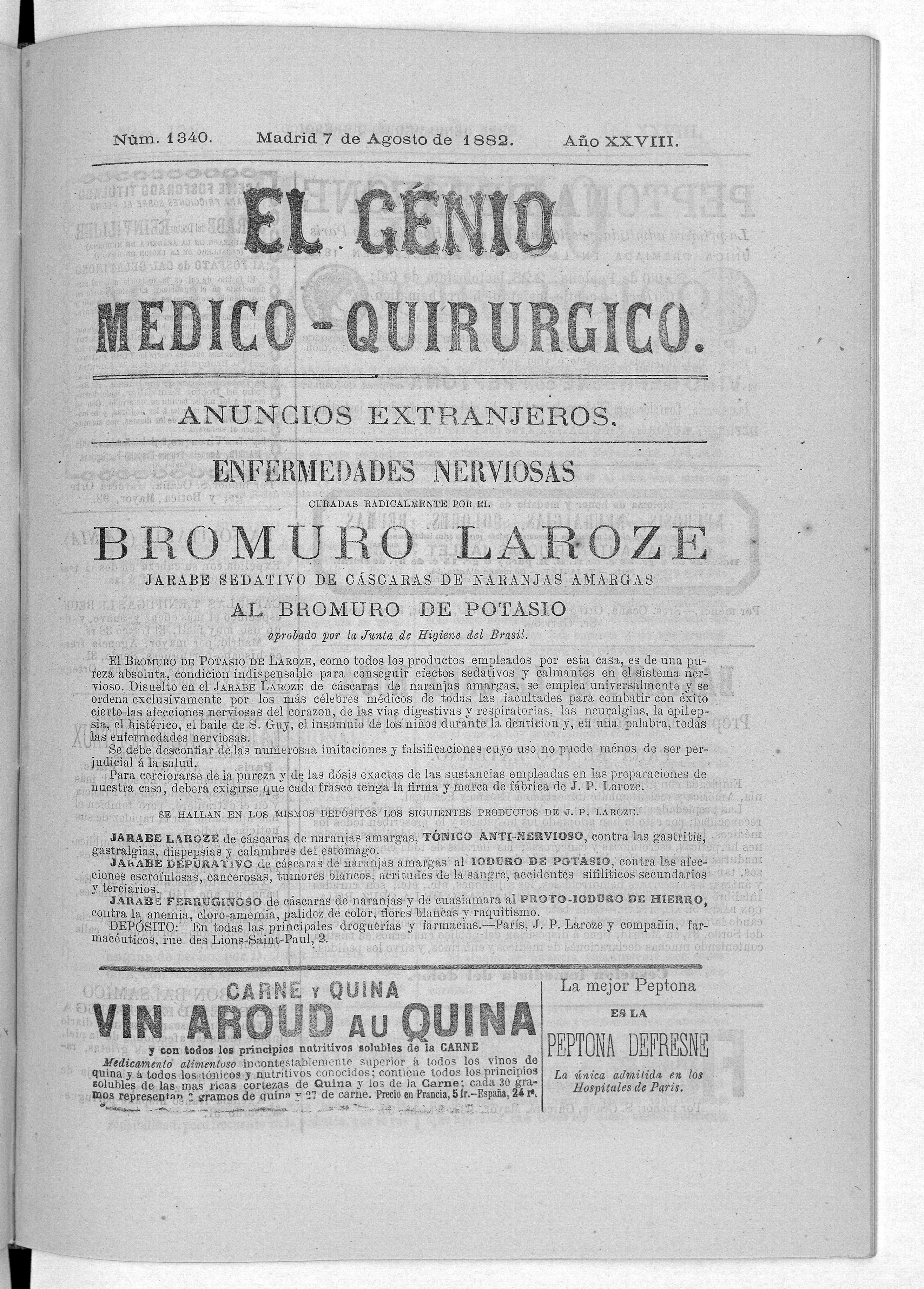 Parte de El Genio médico-quirúrgico : periódico de ciencias médicas ‐ [1882, Vol. 28, n. 1366-1393, 1340-1359.]