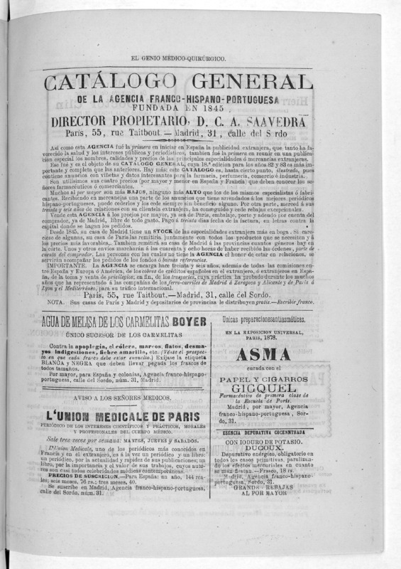 Parte de El Genio médico-quirúrgico : periódico de ciencias médicas ‐ [1882, Vol. 28, n. 1366-1393, 1340-1359.]
